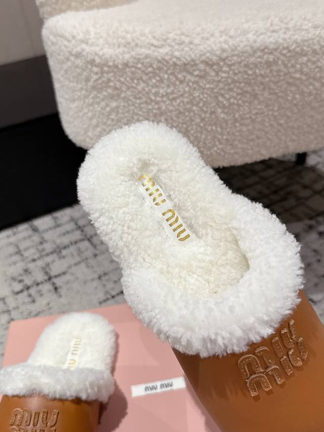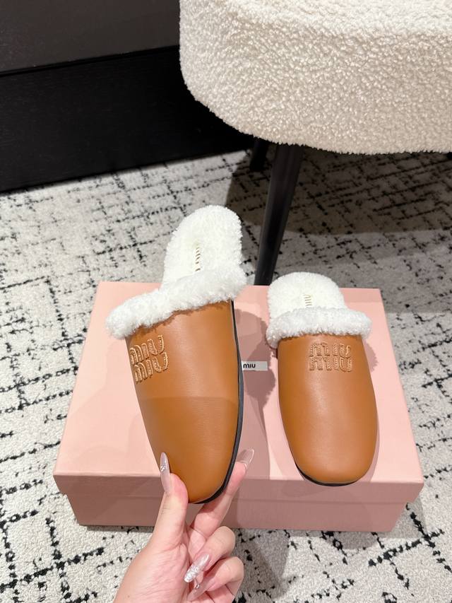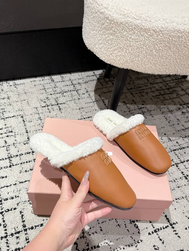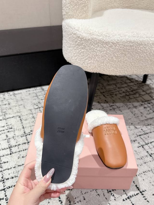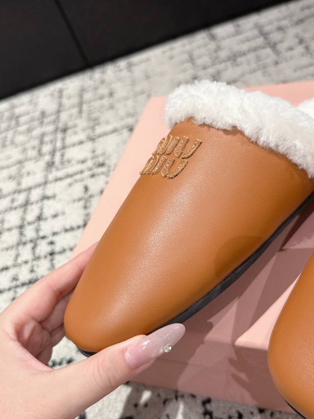 Closed-toe lambskin fur half-slippers Zp development original disassembly version slippers instantly beat the market version Miu is really too girly