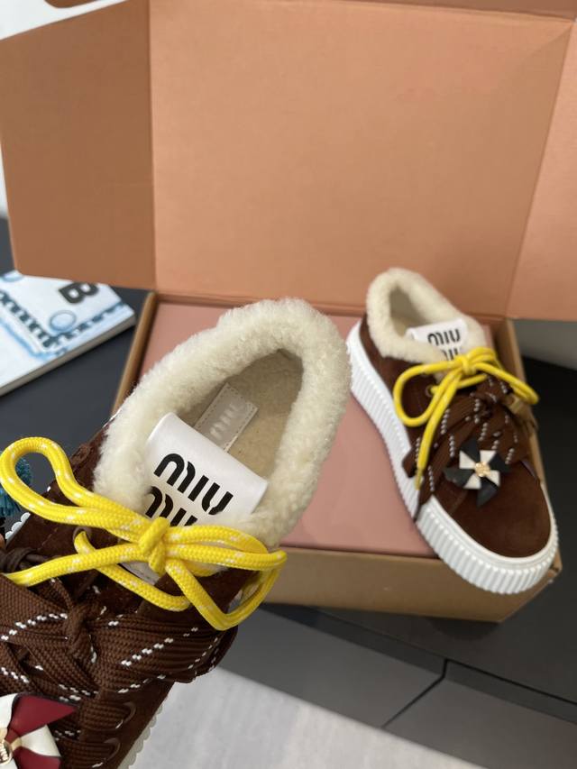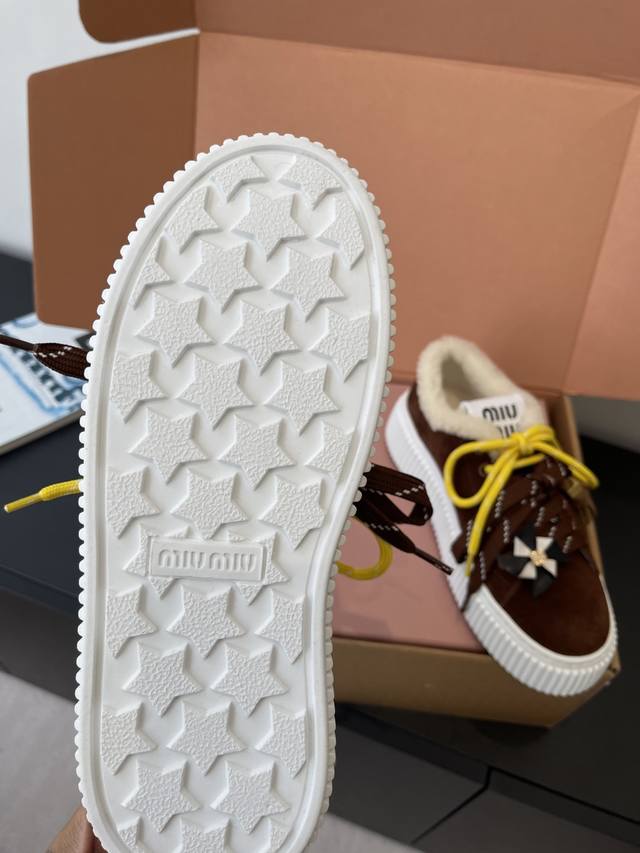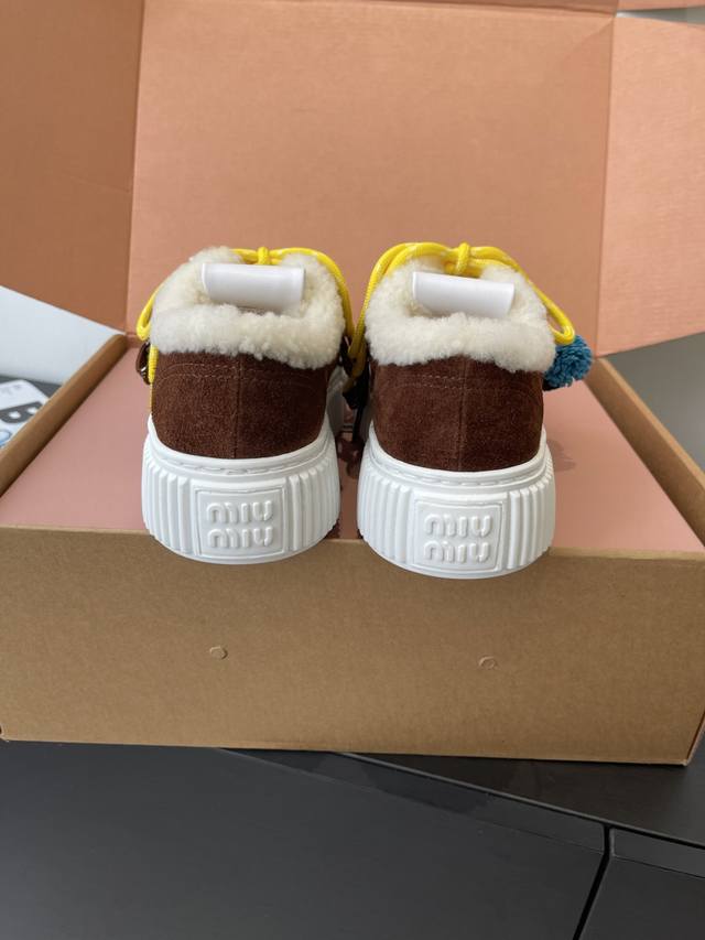 Miu Miu 25Ss Autumn/Winter New Thick-Soled Casual White Sneakers with Wool Lining DDD Top-quality original fabric with a rich texture, paired with classic 3D three-dimensional letter embroidery. The embroidered logo is three-dimensional and full, instantly brightening the overall look and maximizing recognizability. The ultra-lightweight foam outsole is lightweight and highly elastic. Whether for everyday outings or vacations, it can easily handle any occasion. DDD Imported high-gloss cow suede upper DDD Sheepskin lining, lamb wool lining DDD Original IP foam outsole DDD Sizes: 35-40 40.41 Made to order DDD