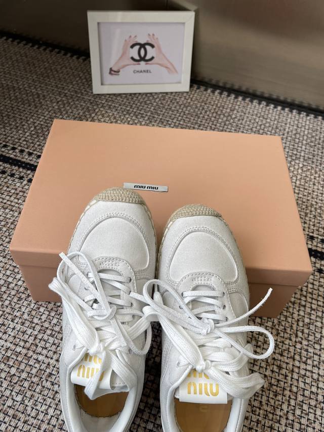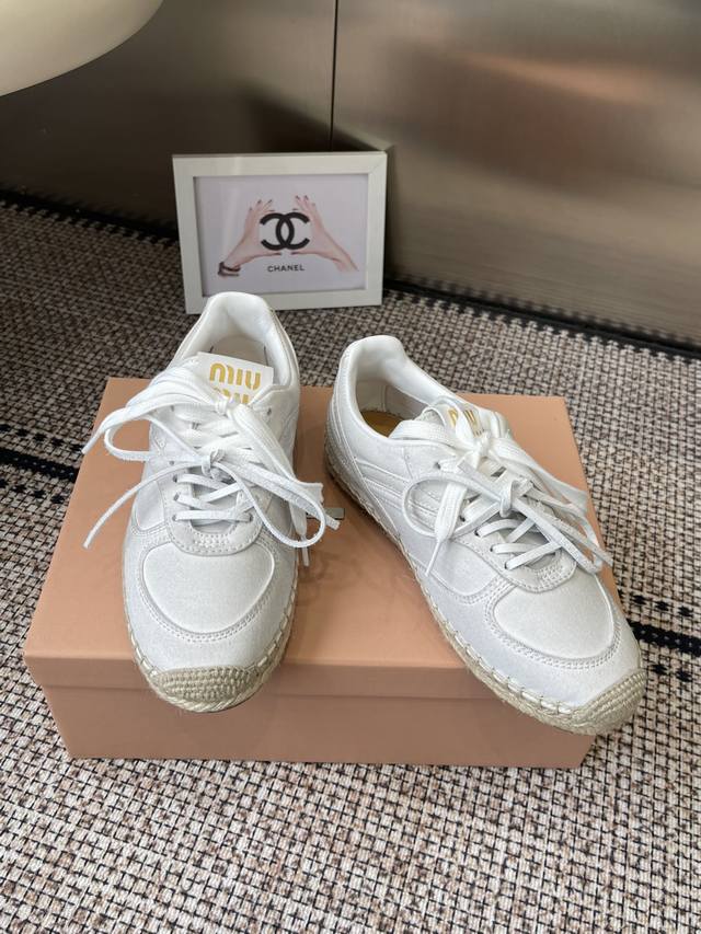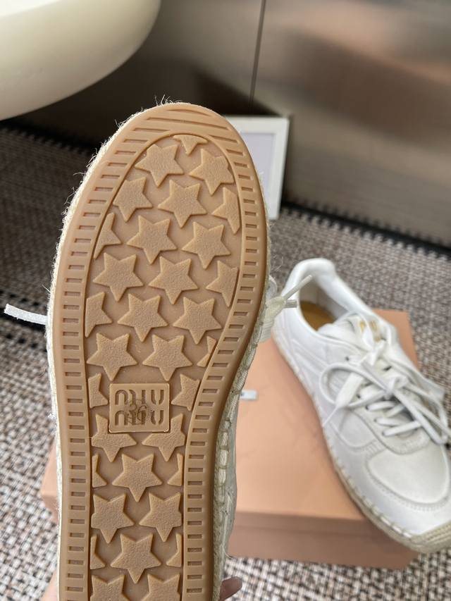 Miu Miu 25Ss Autumn/Winter New Woven Rope Fisherman Shoes DDD Latest Runway Collection Classic Upgrade: Comfort and Style Combined. Every color looks great. Design to suit different style needs. DDD High-gloss calfskin upper, raffia hand-woven lining, high-gloss calfskin outsole, rubber sole. DDD Sizes: 35-40, 40 custom-made. DDD