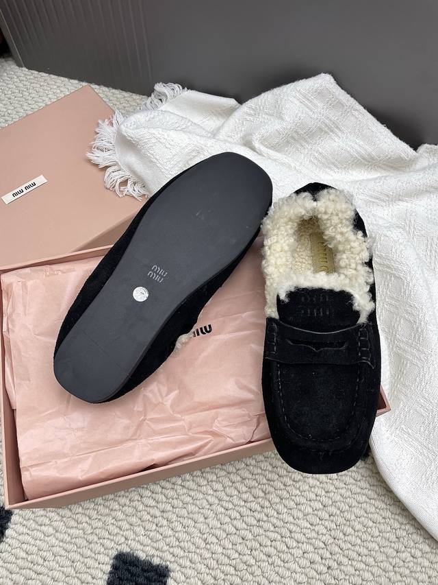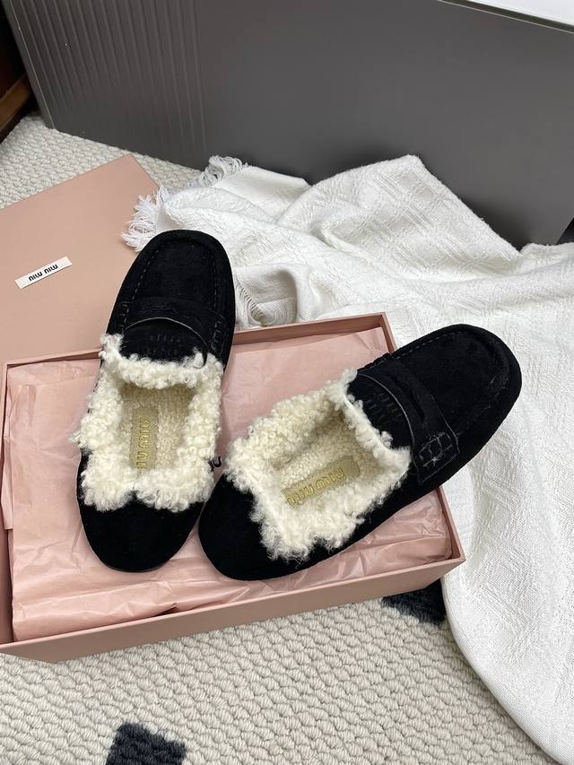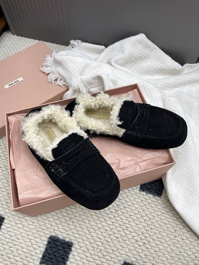Miu Miu 25Ss new autumn and winter sheep curly wool lined loafers