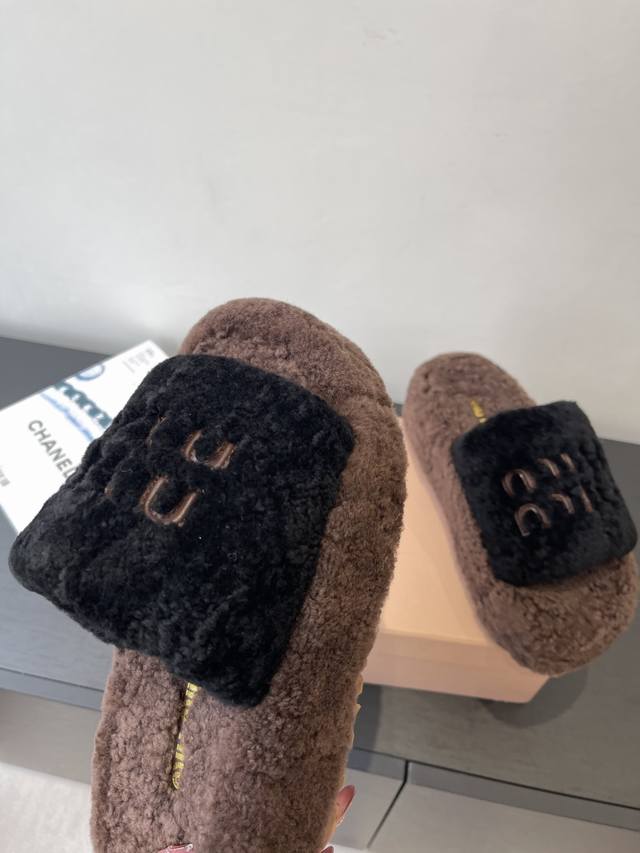 Miu Miu 25Ss new thick-soled wool slippers for autumn and winter. Wool slippers are a must-have with autumn and winter. They're not only warm but also comfortable to the touch, creating a casual and chic look no matter what you pair them with. These pure wool slippers feel thick and substantial when you open them with your hands. The wool lining provides a comfortable, cushioned feel. I love them. The custom-made, original rubber outsole is wear-resistant and non-slip. Sizes: 35-41, 40, 41. Made to order.
