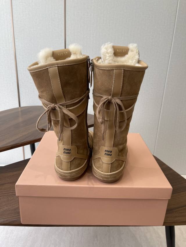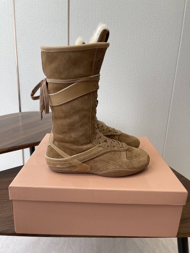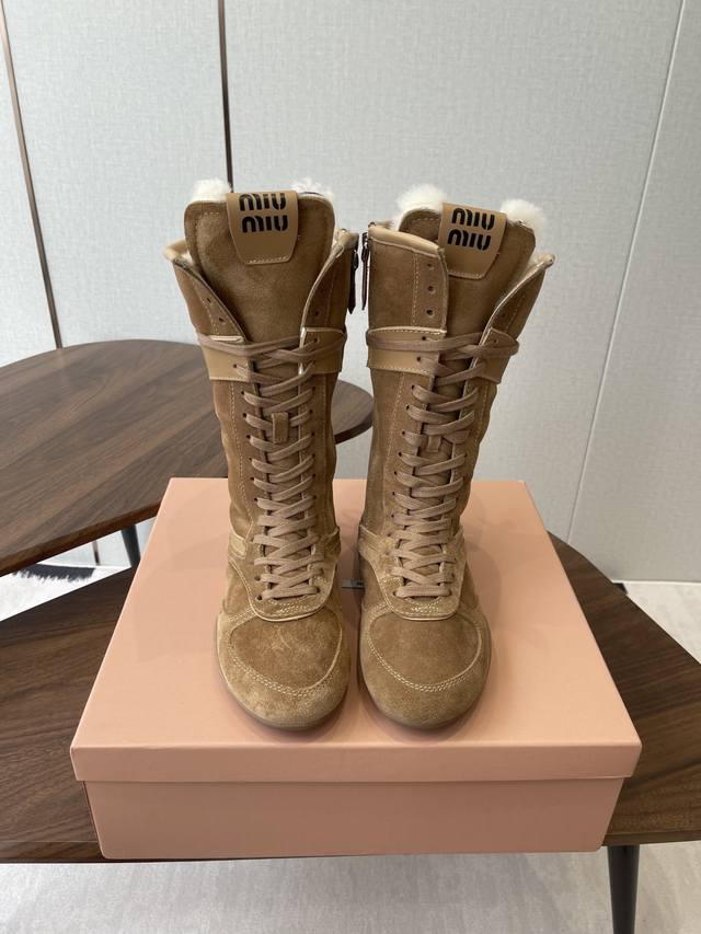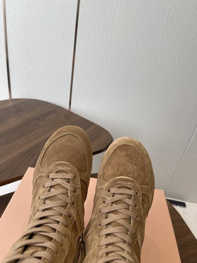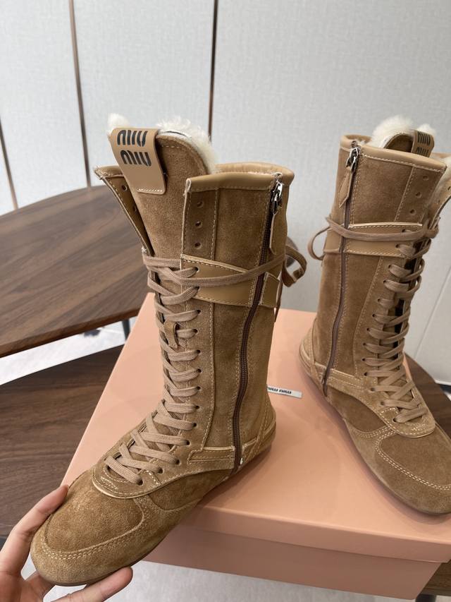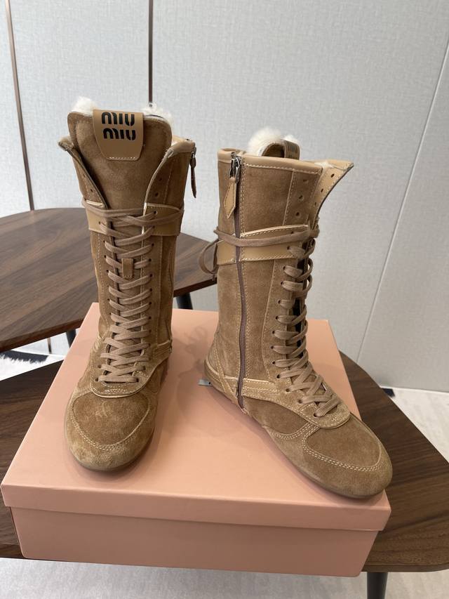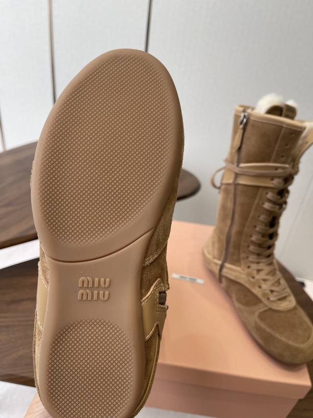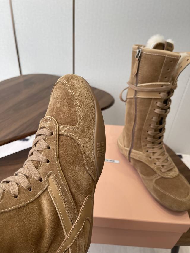 Miu Miu 25Ss Spring/Summer New Arrivals Miu Miu German Training Boxing Boots DDD Showcase craftsmanship details from the Miu Miu collection. A key trend element of the new season DDD A diverse clash with the concept of current favorites, conveying a modern style~ Looks good no matter how you wear them. This summer's fashionista's favorite DDD Looks a little uncomfortable but is super comfortable on the feet DDD Material: Imported cow suede Lining: Wool lining Outsole: Original sole DDD Size: #Women's 35-40 40 Custom orders, no returns or exchanges DDD