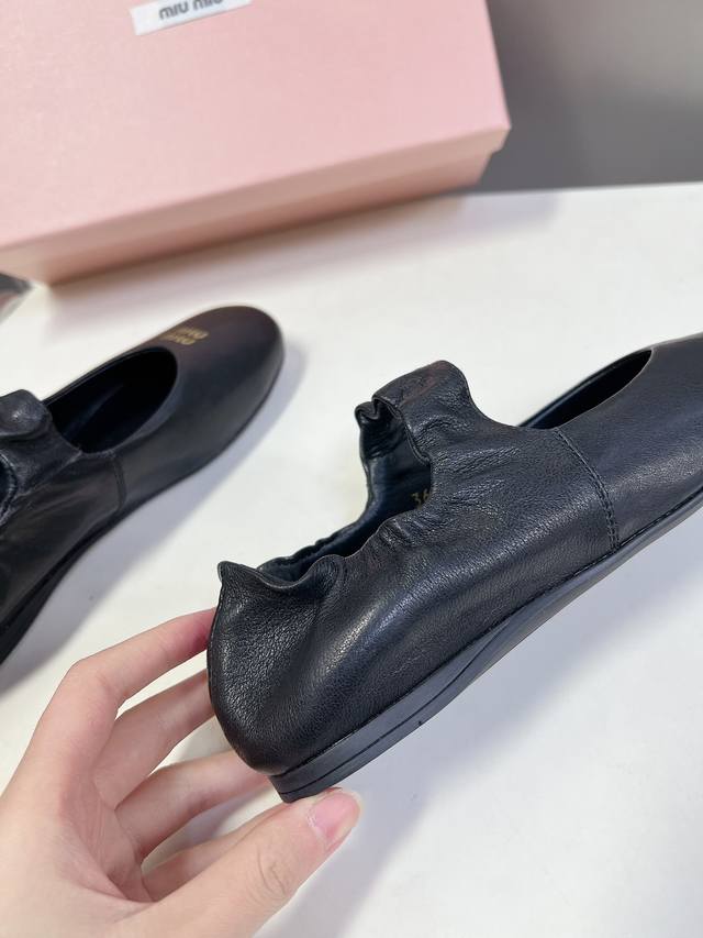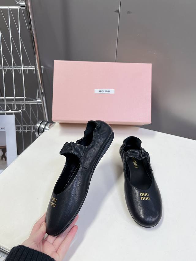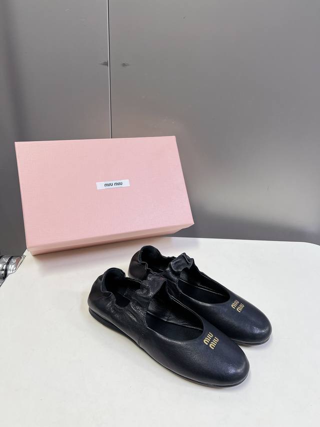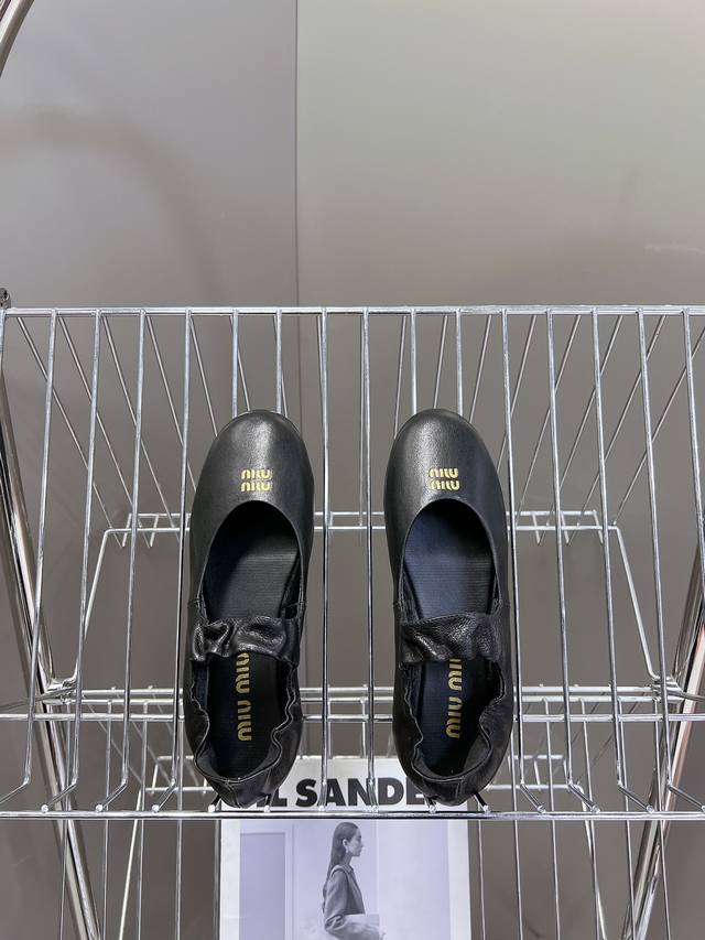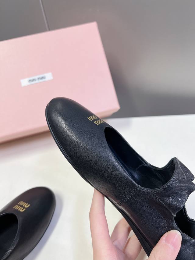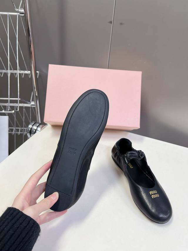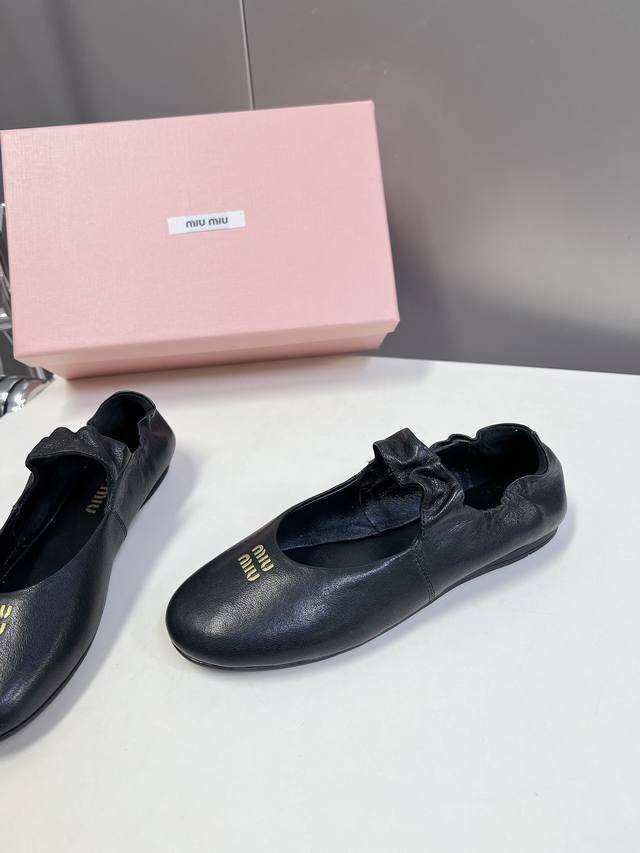 Miu Miu 25Ss Spring/Summer New Ballet Flats. Miu Miu blends the graceful spirit of ballet into everyday life. The classic silhouette of ballet flats is depicted with modern touches! These ultra-soft sheepskin ballet flats draw inspiration from classic Japanese footwear. Simple yet sophisticated, suitable for various styles. Lively and stylish with every step. Upper: Imported sheepskin. Lining: Water-dyed sheepskin lining. Original mold rubber outsole. Size: 35-40. Size 40 is custom-made and non-refundable.