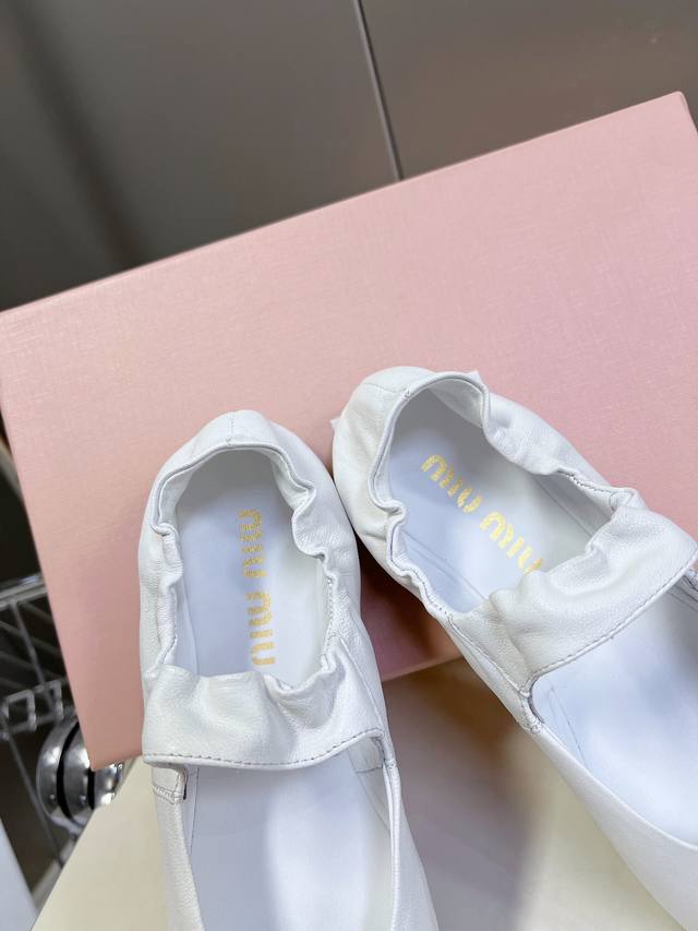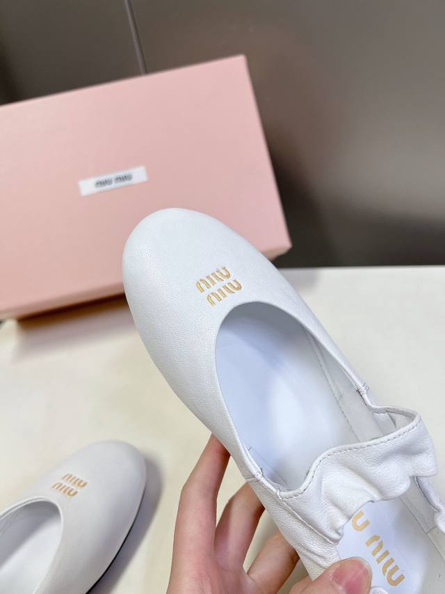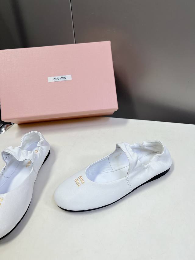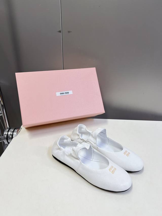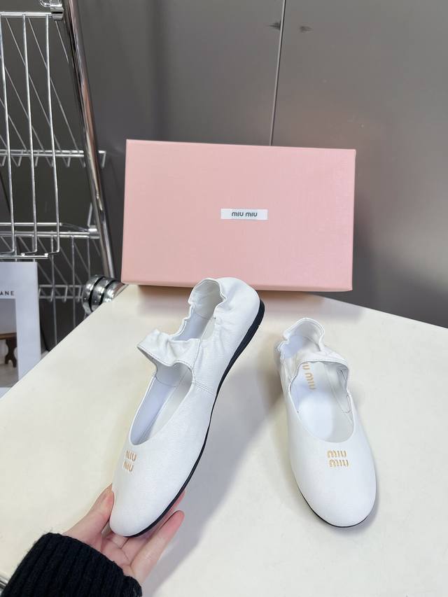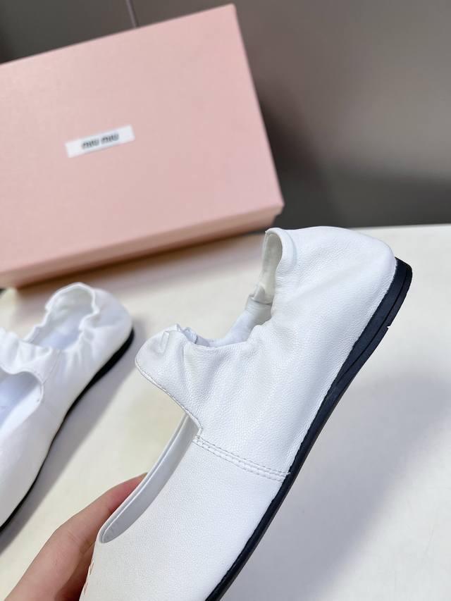 Miu Miu 25Ss Spring/Summer New Ballet Flats. Miu Miu blends the graceful spirit of ballet into everyday life. The classic silhouette of ballet flats is depicted with modern touches! These ultra-soft sheepskin ballet flats draw inspiration from classic Japanese footwear. Simple yet sophisticated, suitable for various styles. Lively and stylish with every step. Upper: Imported sheepskin. Lining: Water-dyed sheepskin lining. Original mold rubber outsole. Size: 35-40. Size 40 is custom-made and non-refundable.