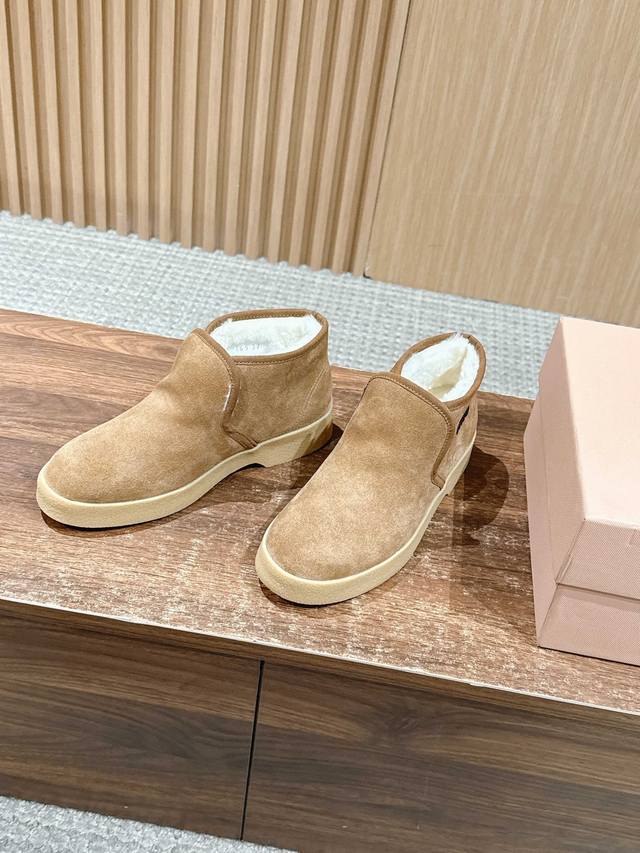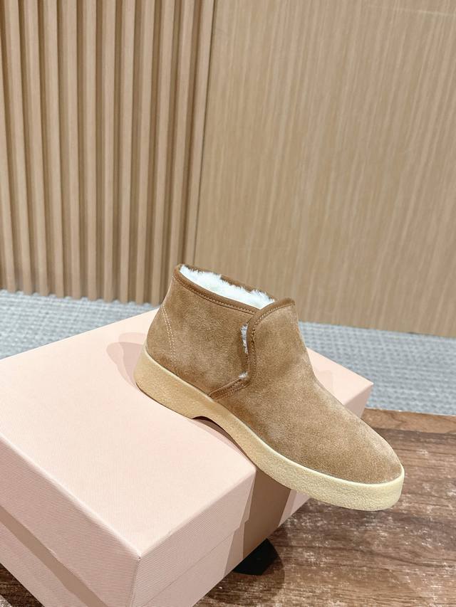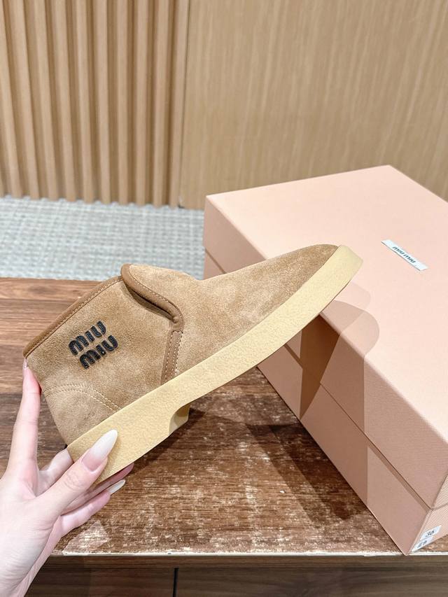 Miu Miu Autumn/Winter Retro Warm Thick-Soled Snow Boots/Ankle Boots DDD The heel-covering design wraps around the ankle, and the thick plush lining is like wrapping your feet in a "little blanket," locking in heat and preventing your heels from getting cold in winter. The upper is made of soft material that feels soft and skin-friendly; the sole is light and elastic, making you feel like "walking on clouds," so walking is effortless and you won't get tired even after wearing them for a long time. DDD Some styles are made with a one-piece molding process, so they are not easy to come apart or unravel, and can be worn for longer; the upper is made of waterproof and stain-resistant material, so it can be wiped clean easily without frequent washing. Classic plaid pattern + low saturation colors, retro and simple style, can be matched with various loungewear, or even short outings. DDD Material: High-gloss cow suede DDD Lining: Wool DDD Outsole: Rubber outsole DDD Height increase: 3.5Cm DDD Size: 35-40, size 40 is custom-made and non-refundable DDD