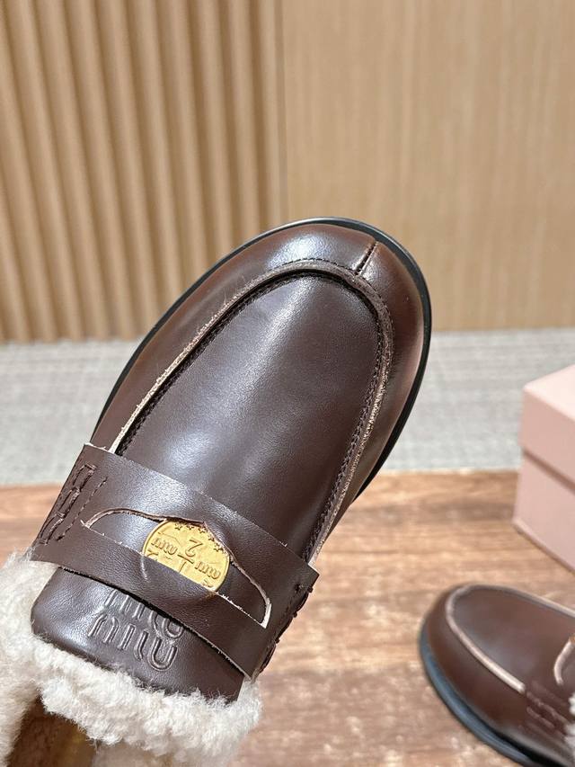 Miu Miu Classic Wool Coin Loafers DDD This Miu Miu style is so beautiful! It's incredibly versatile and looks great with anything. The coin design is both retro and fashionable! DDD All leather edges are finished with oiled edges. Original molded rubber outsole! Original molded coin hardware! DDD Custom cowhide material with wool lining DDD Size: 35-39 40 is a custom order and cannot be returned or exchanged DDD