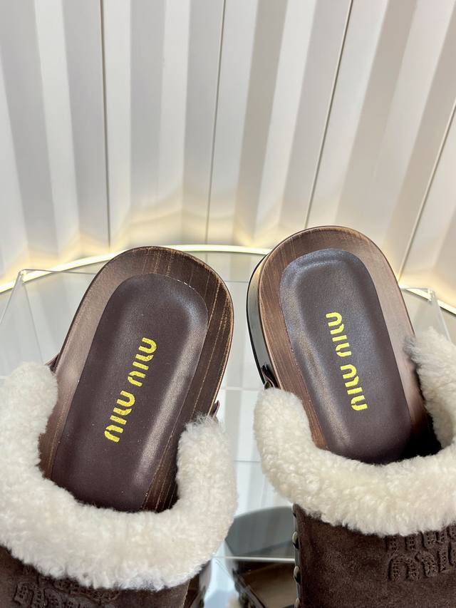 Miu Miu Cotton Sandals 2025 Autumn/Winter New Style Shoes. The unique color-brushing technique from the Miu Miu runway showcases details from the Miu Miu series. A key trend element of the new season