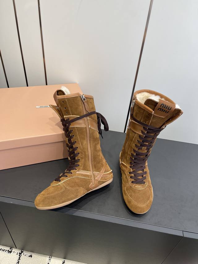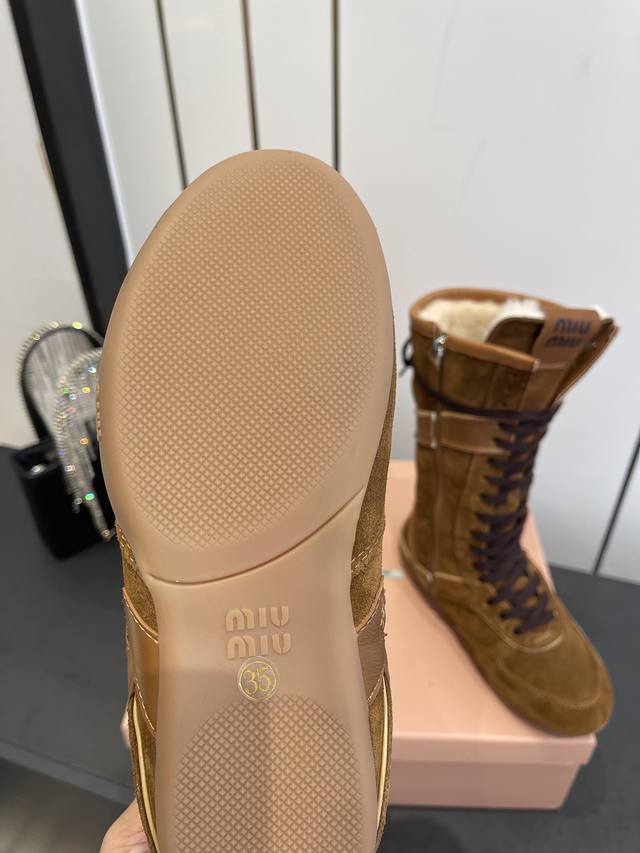 Miu Miu Fall/Winter 2025 New Wool Boots & Martin Boots DDD Retro classic simple stylish versatile~ Super comfortable and lightweight without being bulky. All-wool lining, super beautiful and warm, a winter essential DDD Imported cow suede lining, wool lining, original mold, outsole DDD Sizes: 35-40, 40 custom-made DDD