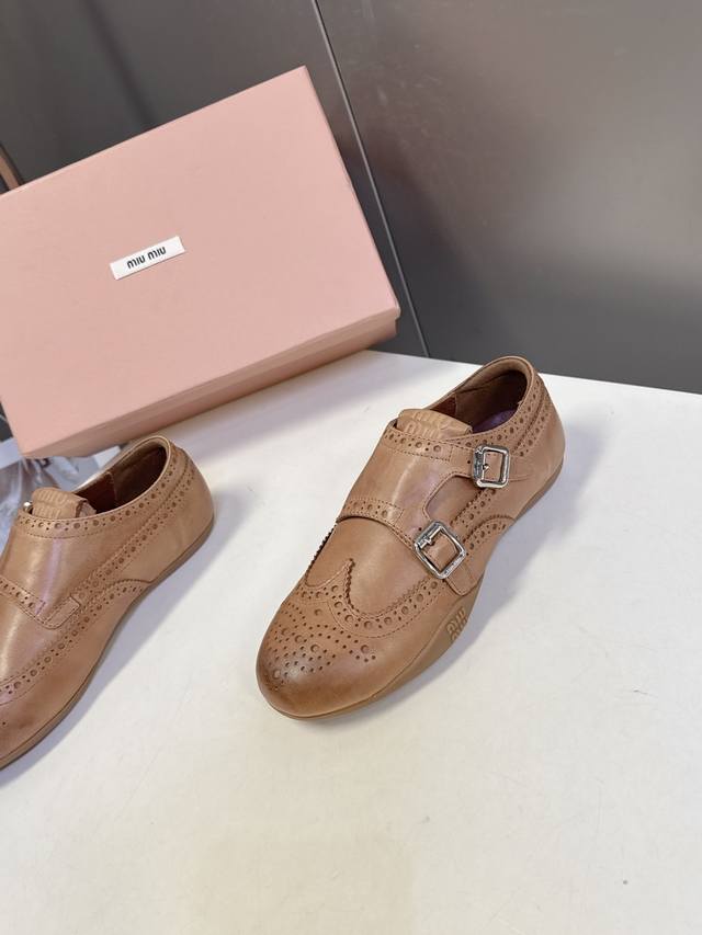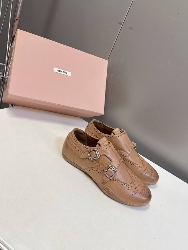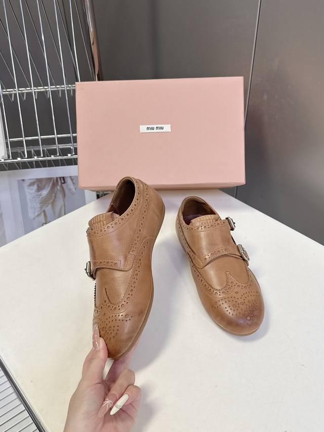 Miu Miu Fall/Winter Newest Brogue Retro Thin-Soled Shoes