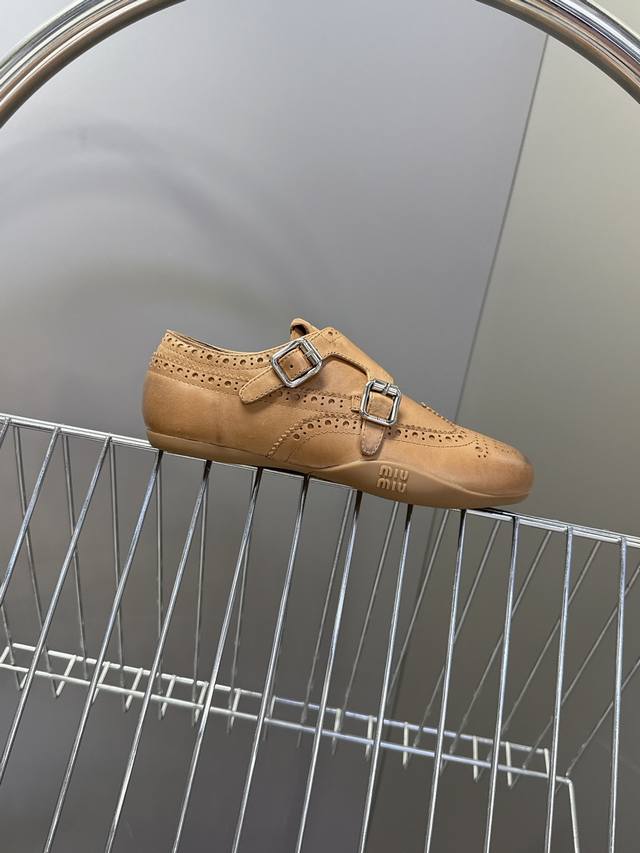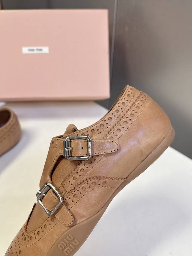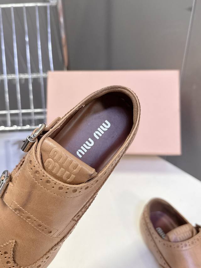 Many celebrities and fashion bloggers have recommended Miu Miu's consistent design style, absolutely high-value, fitting the current old-money style, and the Maillard color scheme firmly captures the hearts of young girls, truly suitable for all ages. Imported calfskin upper, distressed toe, full of fashion sense, meticulously crafted shape, super comfortable feel, original mold, non-slip outsole. Size: 35-40