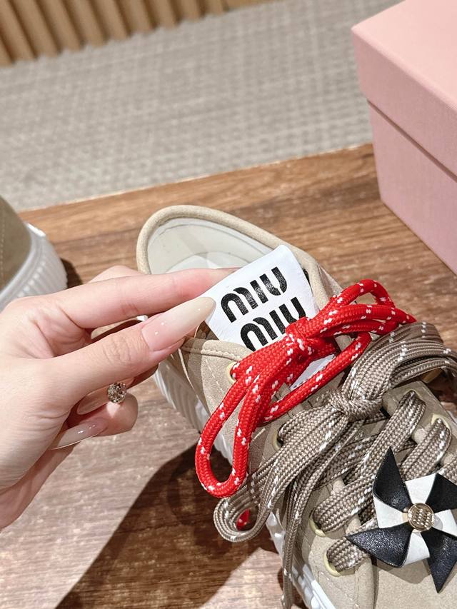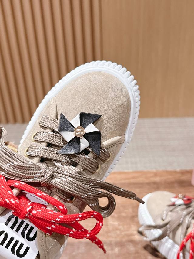Miu Miu# Miu Miu Autumn/Winter New Thick-Soled Casual White Sneakers Wool Biscuit Shoes DDD Simple design, ultra-lightweight original mold sole, perfect comfort DDD Easy to wear and match, 6cm height increase DDD The popularity of biscuit shoes is only increasing, not only because of their high versatility but also because of their outstanding comfort. The layered waves of the sole are like biscuits! The look is great and durable. Miu shoes have always been girly, and few girls can resist Miu's sweetness! This time it's Miu's biscuit shoe series 4. Although it has a simple design, the 1Ogo tongue is also very recognizable! Easily paired with long skirts, short skirts, jeans, and casual wear, these shoes create a unique and youthful style. Upper: Cowhide suede/lamb wool; Lining: Cowhide leather; Outsole: Original molded outsole; Size: #35-41 (40 & 41 are custom-made and non-refundable).