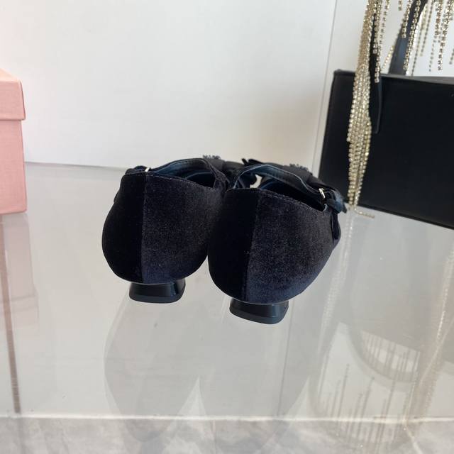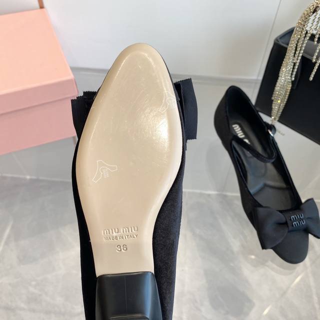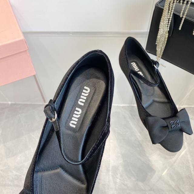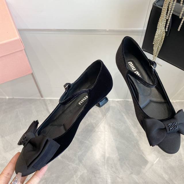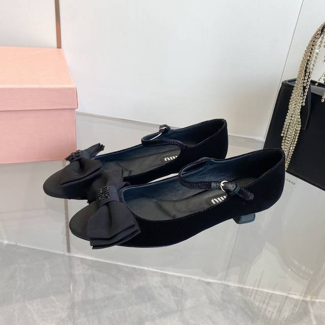 Miu Miu new spring and summer Mary Jane single shoes bow velvet lady-like low heels