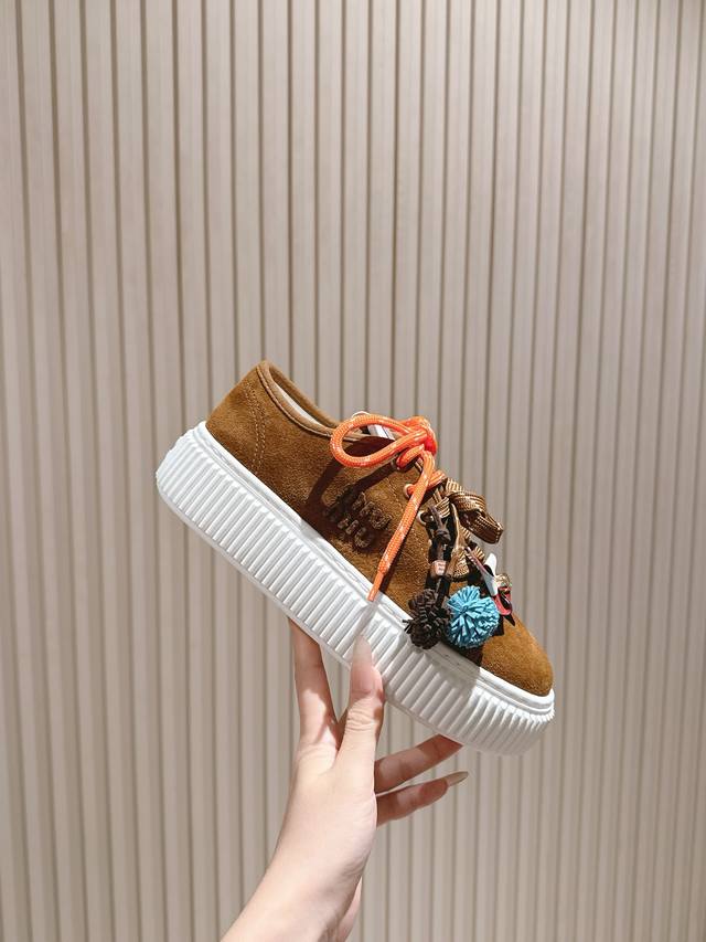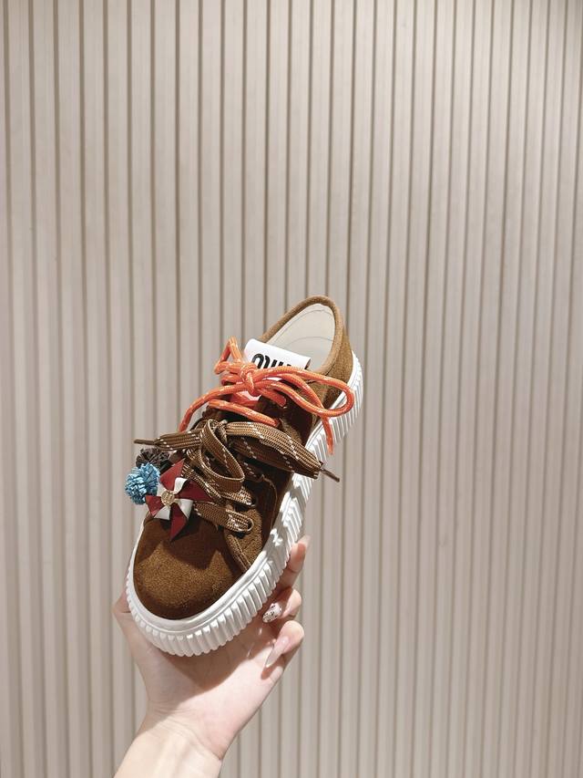 Miu Miu New Thick-Soled Canvas Biscuit Shoes with Wool Lining, Simple Design, Ultra-Light Foam Sole, Super Comfortable and Easy to Match, 5cm Height Increase. Size: 35-39 40 41. Custom Made, No Returns or Exchanges.