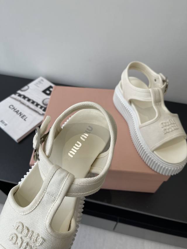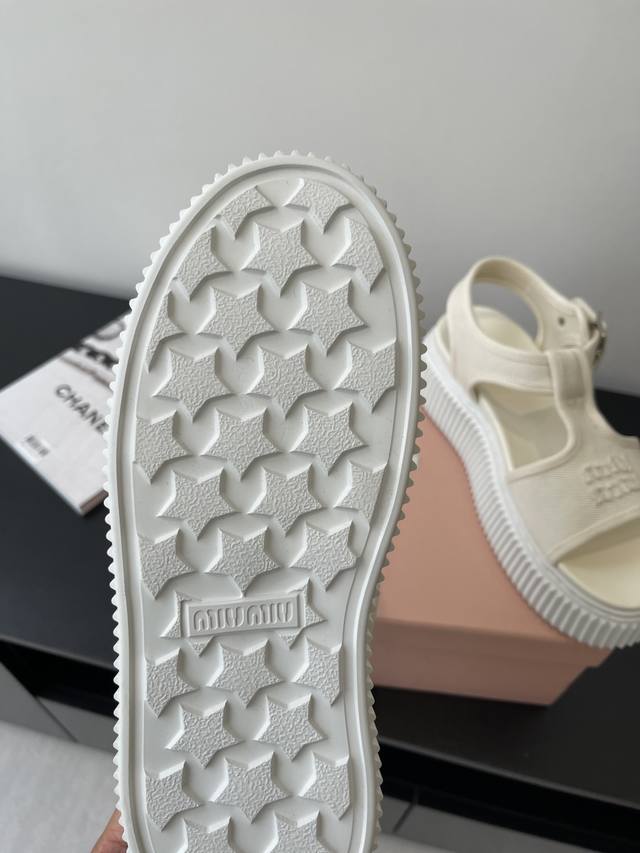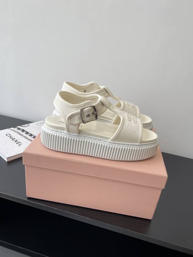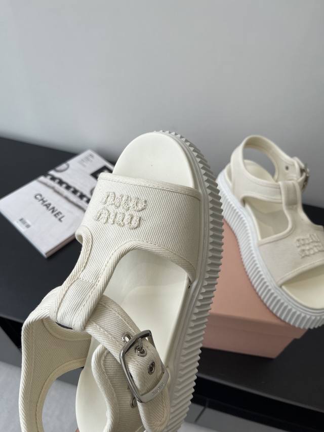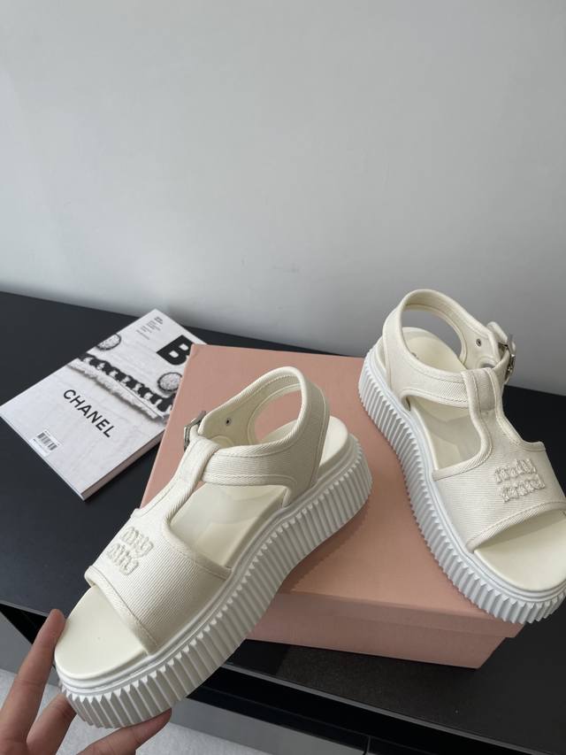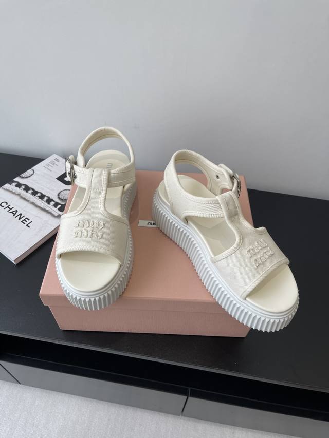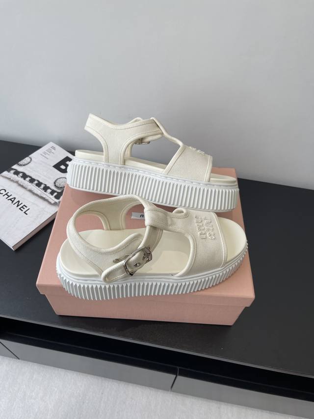 Miu Miu Spring/Summer New Runway Cookie Sandals Thick-Soled Shoes With A Minimalist Sports Sneaker Design And A Distinctive Tongue, Creating A Laid-Back, Sweet Casual Style. The Shoes Exude A Strong Presence And Can Be Effortlessly Paired With Long Skirts, Short Skirts, Or Shorts To Stand Out From The Crowd.