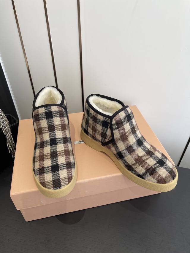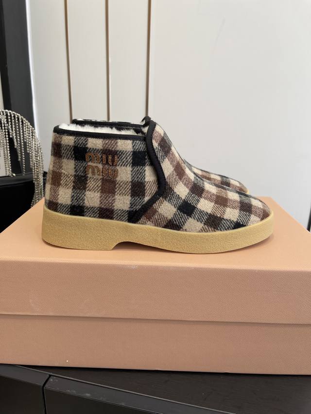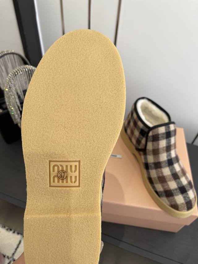 Miu Miu Suede and Shearling Ankle Boots DDD The soft, lightweight texture defines the silhouette of these suede and shearling ankle boots, combining elegance and practicality. The materials and shape showcase the modern and youthful energy of Miu Miu style. DDD Embroidered leather logo embellished upper DDD Shearling lining DDD Rubber sole DDD Shearling insole DDD Insole adorned with a screen-printed logo DDD Sizes: 35-40 DDD