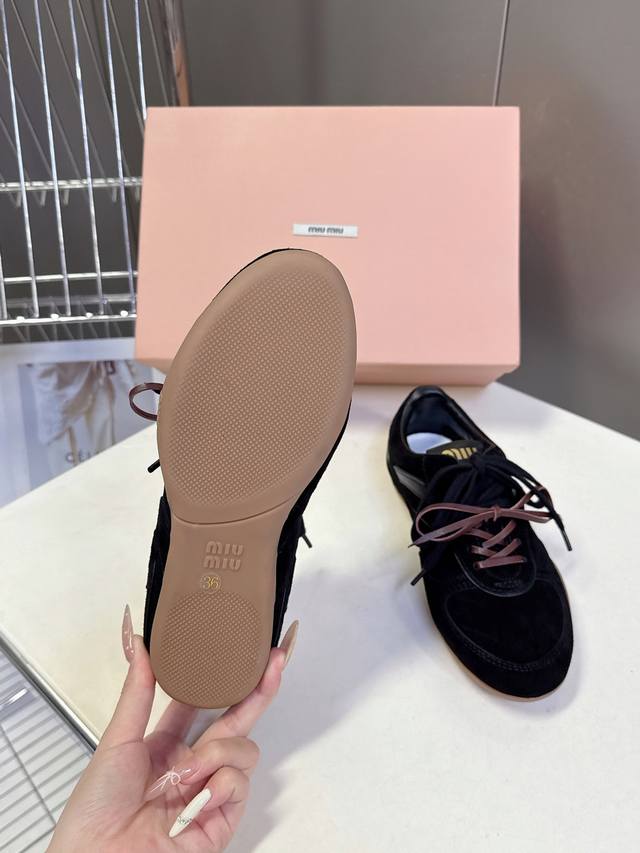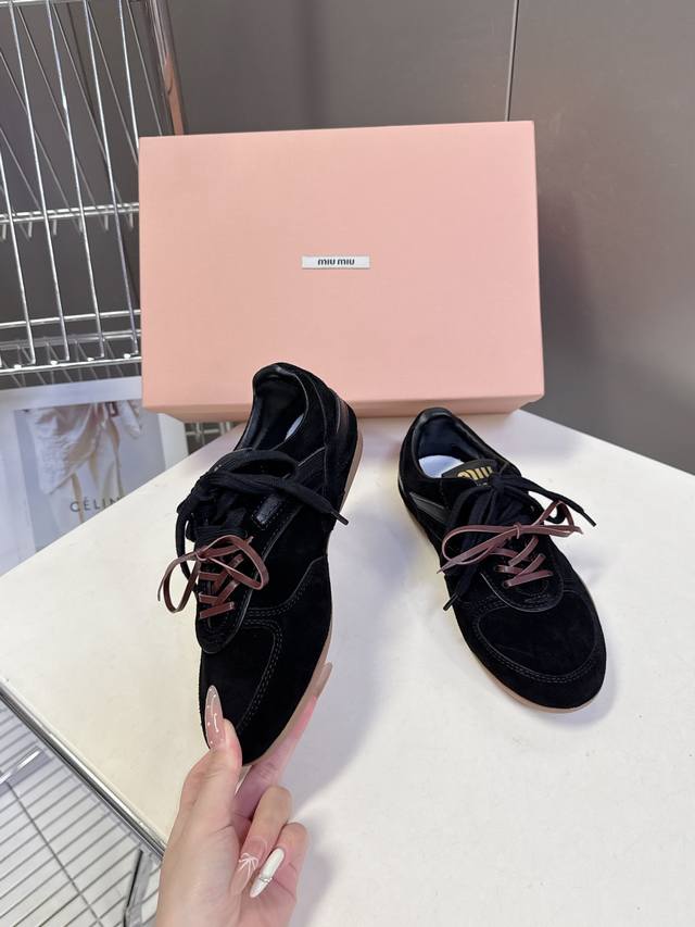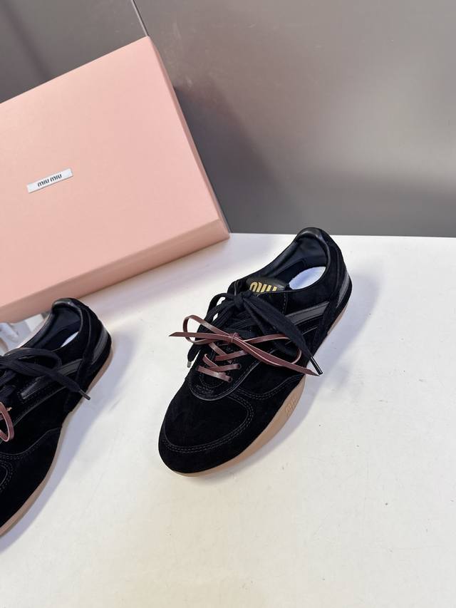 Miu Miu's latest runway retro casual shoes, German training shoes. A top-selling item from the official runway, recommended by numerous celebrities and fashion bloggers. Miu style remains as popular as ever, fashionable and versatile, suitable for both sweet and edgy looks. Super youthful and incredibly versatile, whether worn barefoot or with socks. Upper: Imported retro calfskin. Insole: Mixed sheepskin. Outsole: Original rubber sole. Size: 35-40. Size 40 is custom-made and non-refundable.