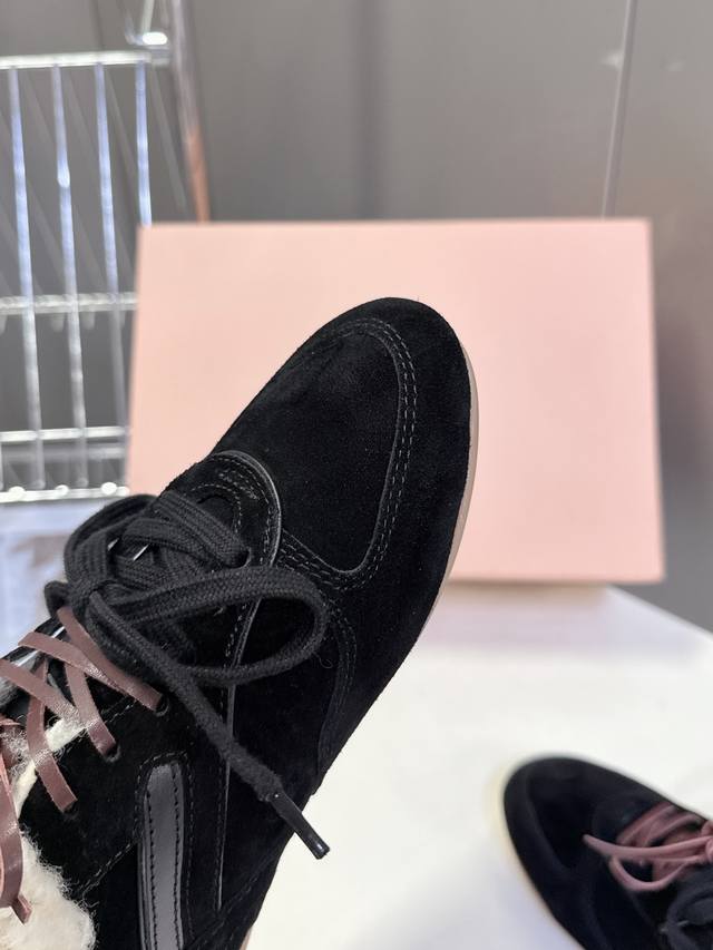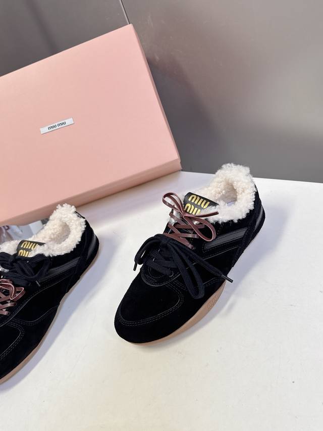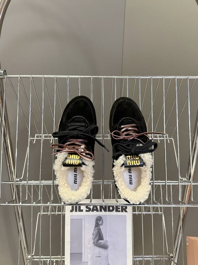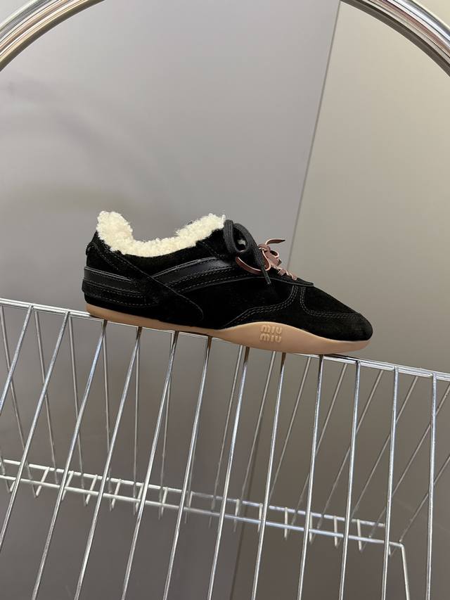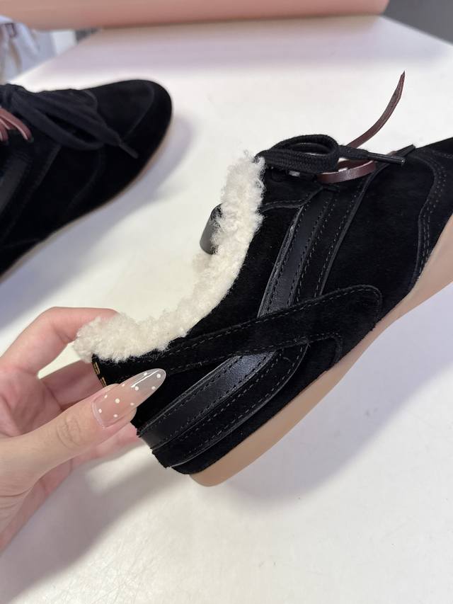 Miu Miu's latest runway retro furry shoes, German training shoes. A top-selling item from the official runway, recommended by numerous celebrities and fashion bloggers. Miu style remains as popular as ever, fashionable and versatile, suitable for both sweet and edgy looks. Super youthful and incredibly versatile, whether worn barefoot or with socks. Upper: Imported retro calfskin, genuine wool lining. Sole: Original rubber outsole. Size: 35-40. Size 40: Custom orders, no returns or exchanges.