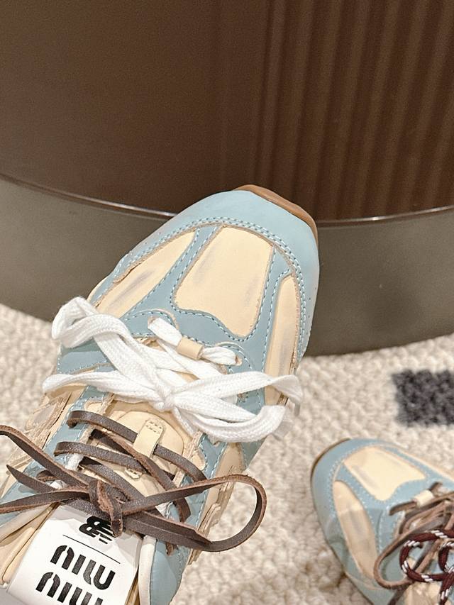 miu Miu's leather half-slip sneakers embody the perfect fusion of sport and elegance. The light and flexible mesh allows your feet to breathe freely, while the refined texture of the leather embodies a luxurious style. Their clever splicing creates a creative dialogue, sparking a unique fashion spark. The half-slip design is casual and free-spirited, as if breaking free from constraints, letting every step exude an air of freedom. Whether strolling on the beach or navigating the bustling city streets, these shoes will make you the center of attention, allowing you to fully unleash your unique charm and personality.
