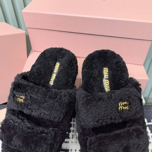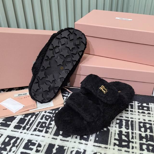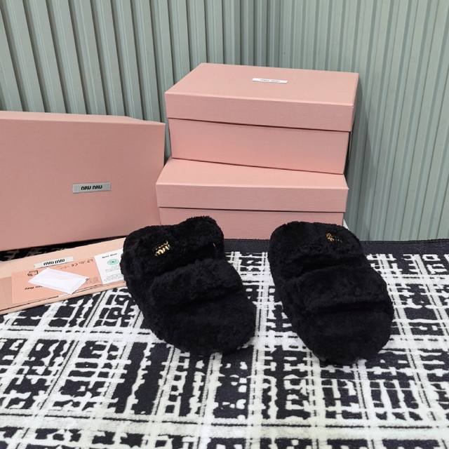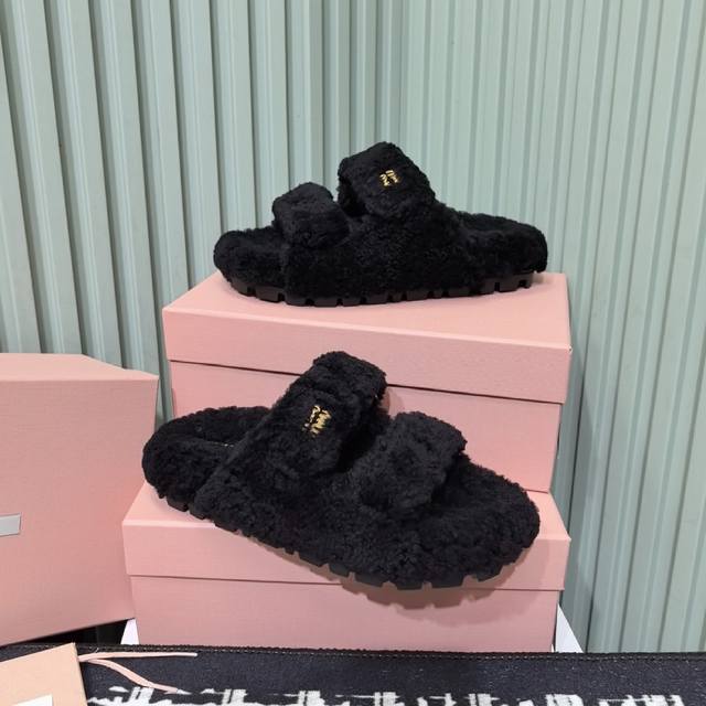 Miu Miu's new buckle-style wool slippers are perfect for autumn and winter. They are comfortable and stylish, warm and stylish, and are suitable for all foot shapes! Made of 1/4-grain lambskin, genuine leather and fur. Sizes: 35-39, 40, 41. Custom made. No returns or exchanges.