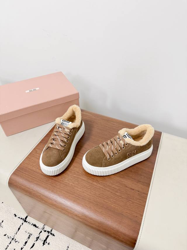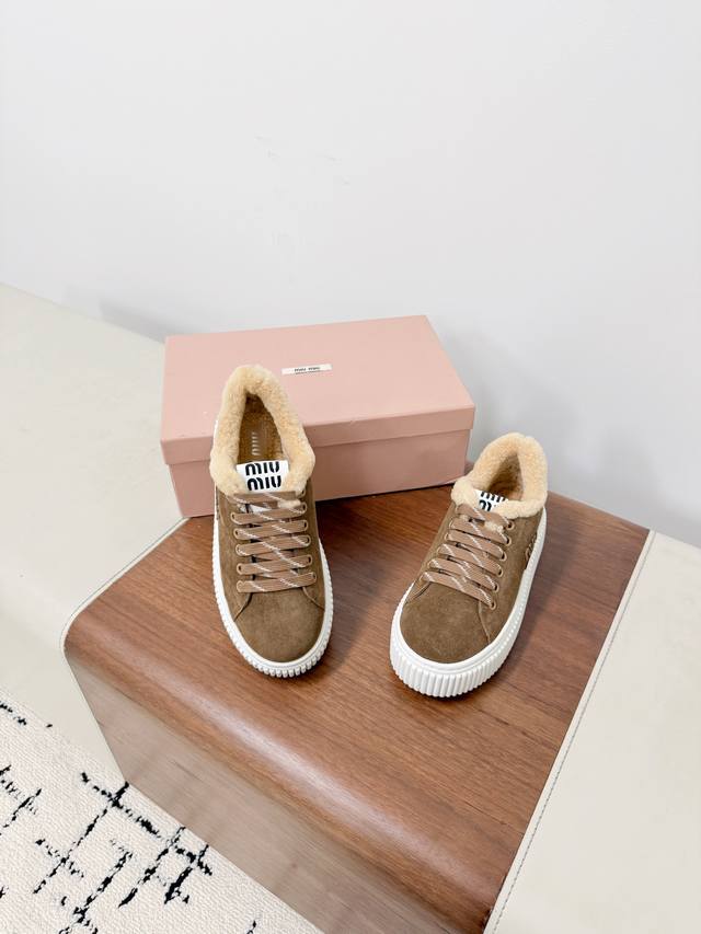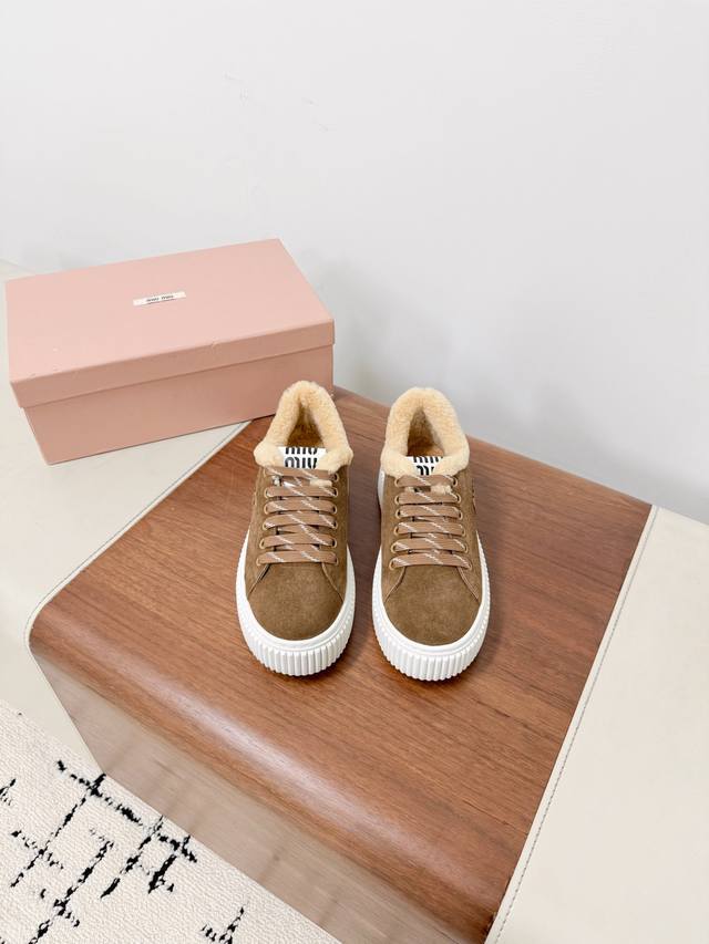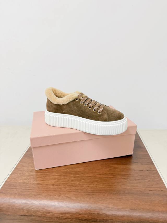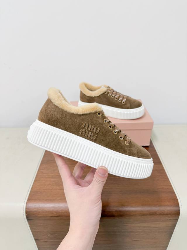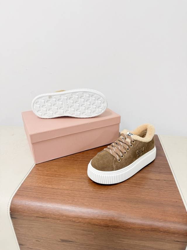 Miumi* Autumn/Winter New Plush Biscuit Shoes. Miui*'s new fluffy shoes are absolutely adorable! The modern design creates an elegant style that will make your heart flutter. The warm, fluffy lamb's wool is so gentle! They add 4cm in height and look amazing with wide-leg jeans!!! Size: 35-40. Extremely cost-effective, no bargaining.