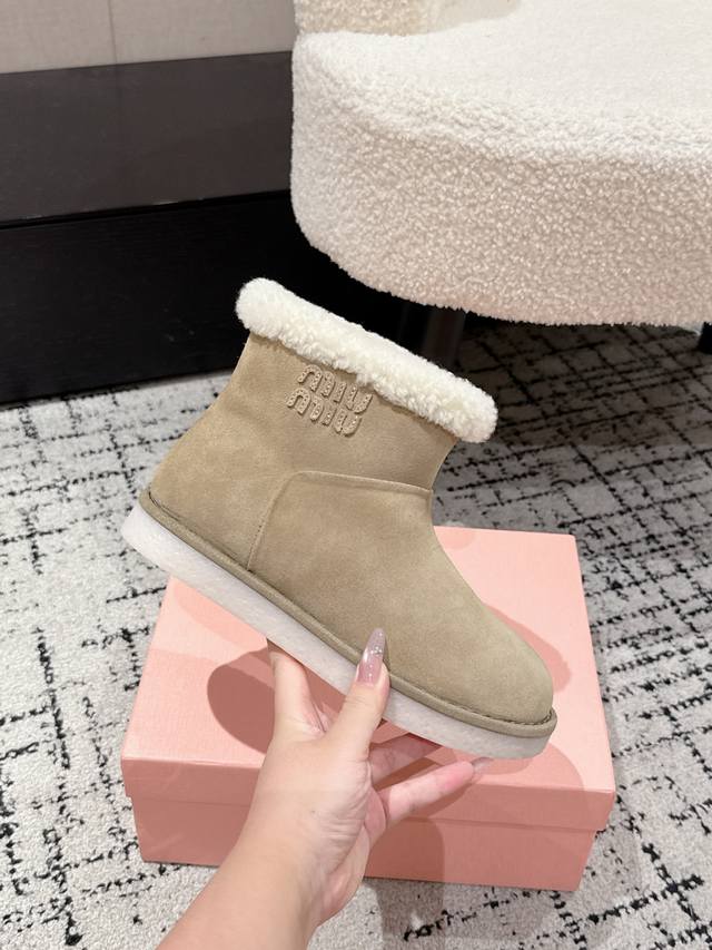 MiumiuحMiumiu 25 Newest Fall Pendant Wool Snow Boots