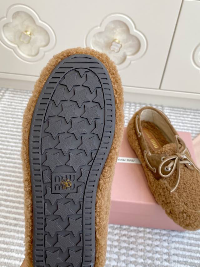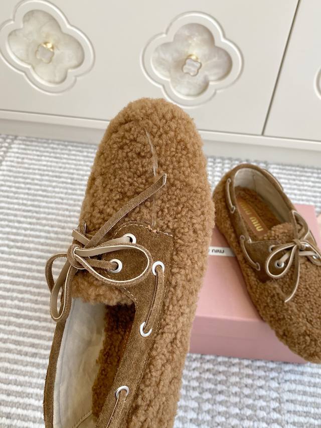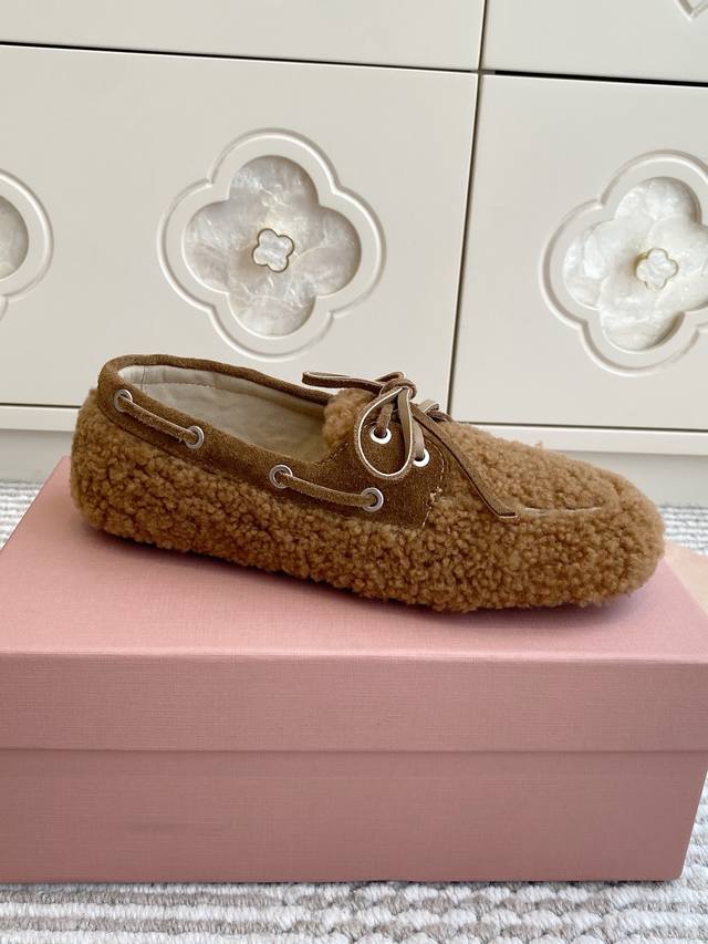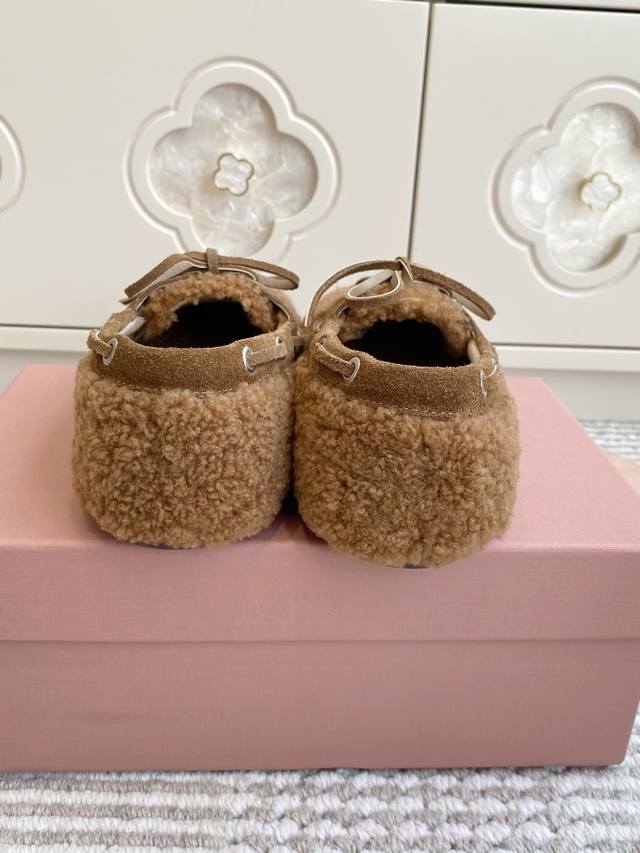 Miumiu 2025 | Autumn/Winter New Arrival: Lambswool Loafers DDD New Miu Wool Loafers DDD Reimagined classic loafers with a more retro look DDD The new style is made of shearling, showcasing an elegant retro temperament DDD It also has a relaxed and casual feel of old money. Exquisite details embellish the overall design, making it understated yet unique DDD Size: 35-39 40 Custom sizes are non-refundable and non-exchangeable DDD