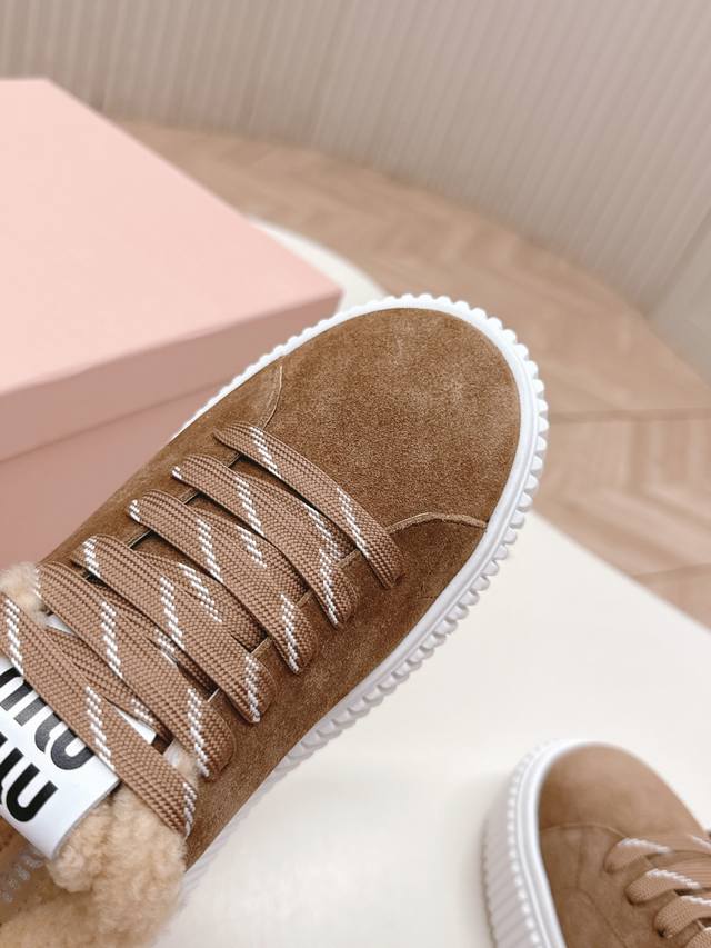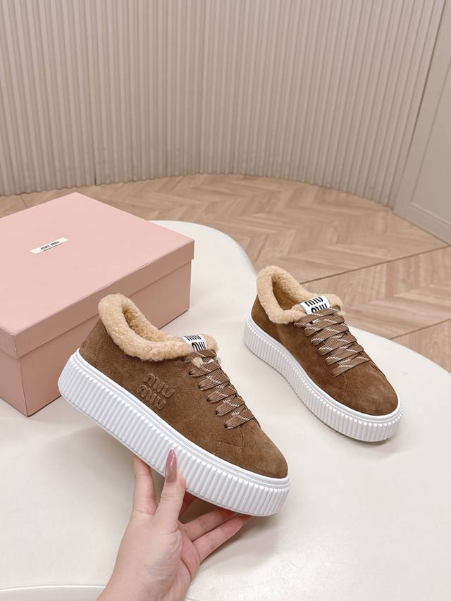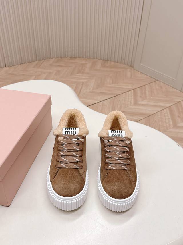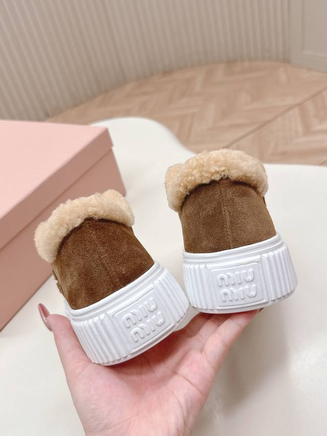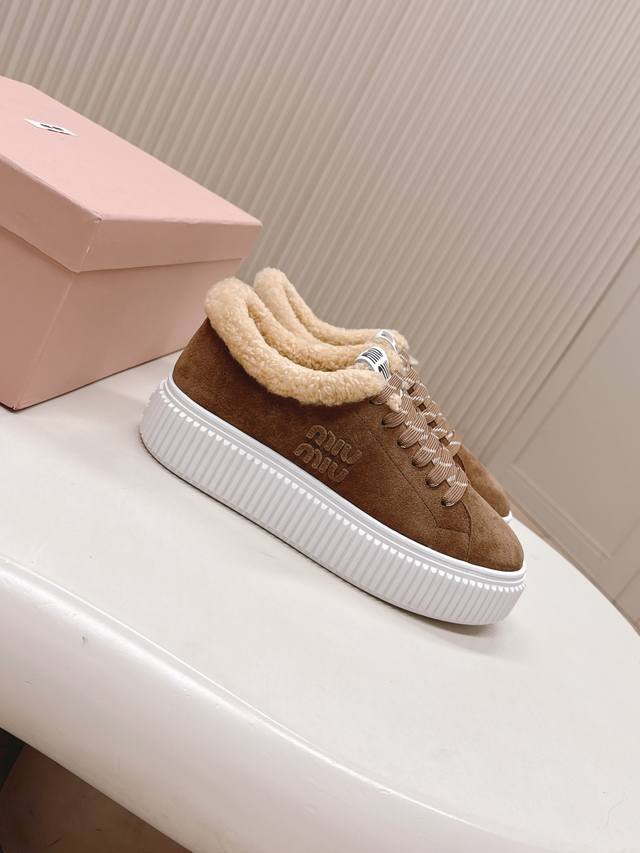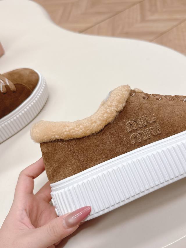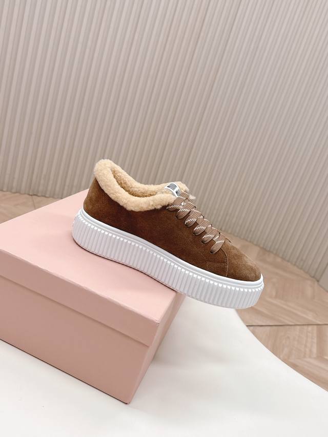 Miumiu 2025 Autumn/Winter New Style Wool Platform Biscuit Shoes - A classic winter upgrade with added wool for a 4cm height increase. These shoes combine the elegance and lightness of biscuit shoes with the cuteness and warmth of a plush texture, making them both stylish and practical. Upper: Cowhide Lining: Wool Outsole: Original molded non-slip outsole Sizes: 35-40