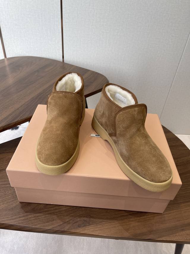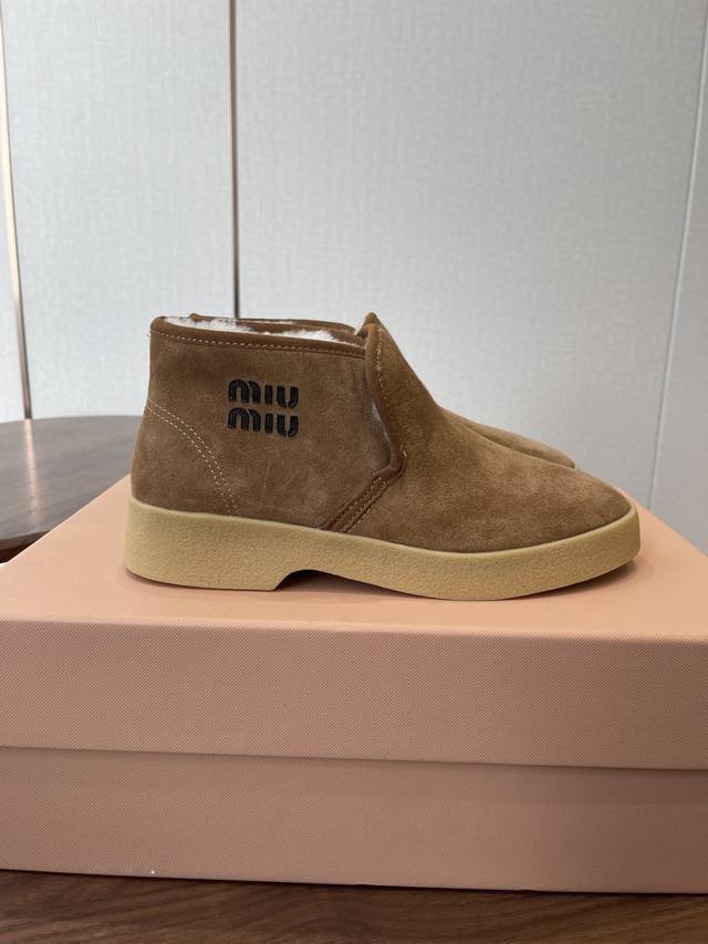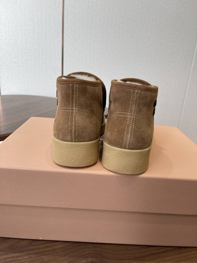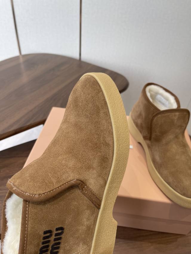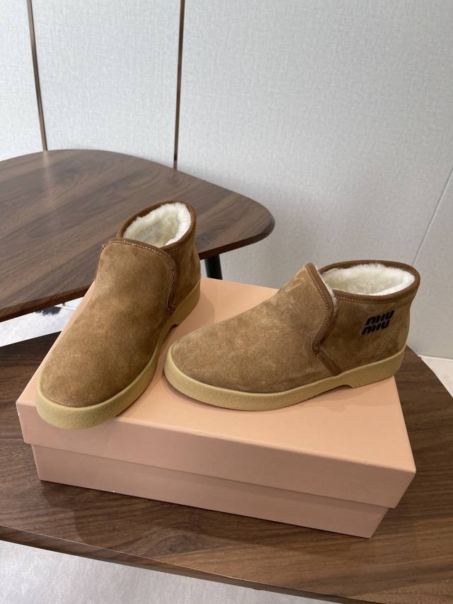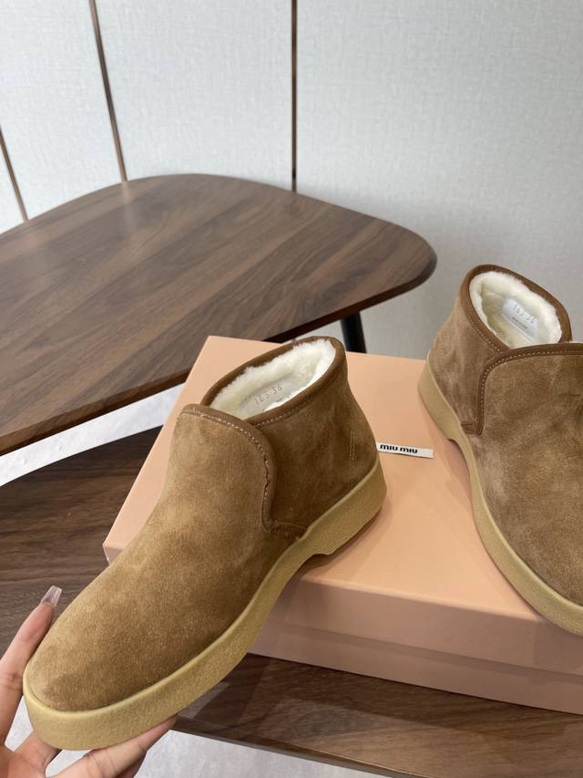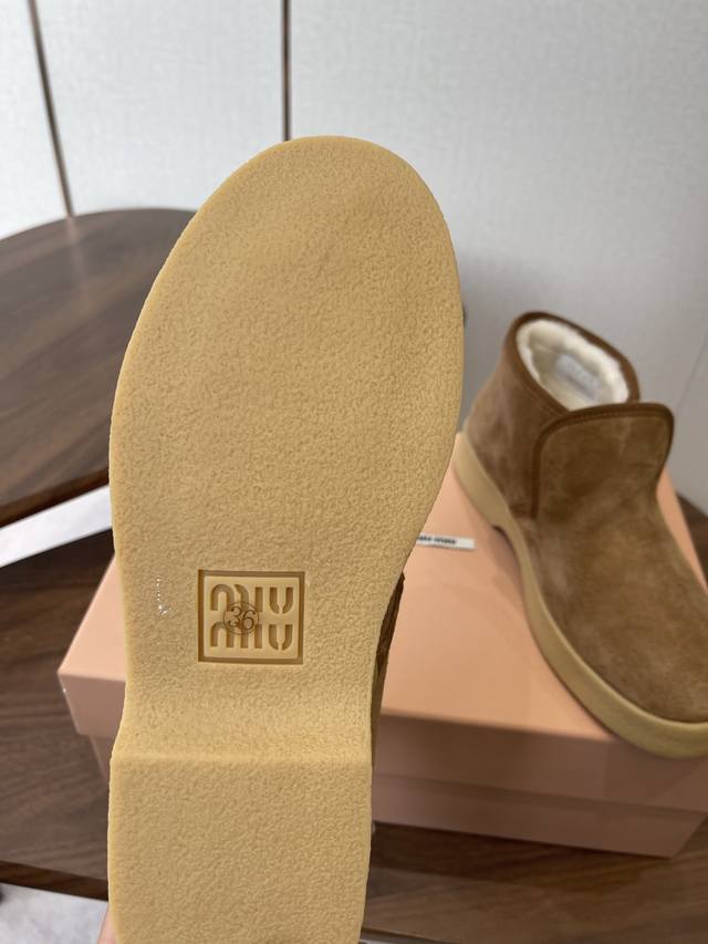 Miumiu 2025 Autumn/Winter Runway Style Wool Ankle Boots, Snow Boots, Furry Shoes DDD Frequently featured on the covers of major fashion magazines, loved by celebrities and Xiaohongshu bloggers DDD Upper: Imported high-gloss cow suede, original mold fabric Lining: Imported wool lining Sole: Authentic mold outsole DDD Size: 35-40 Size 40 is custom-made and non-refundable DDD