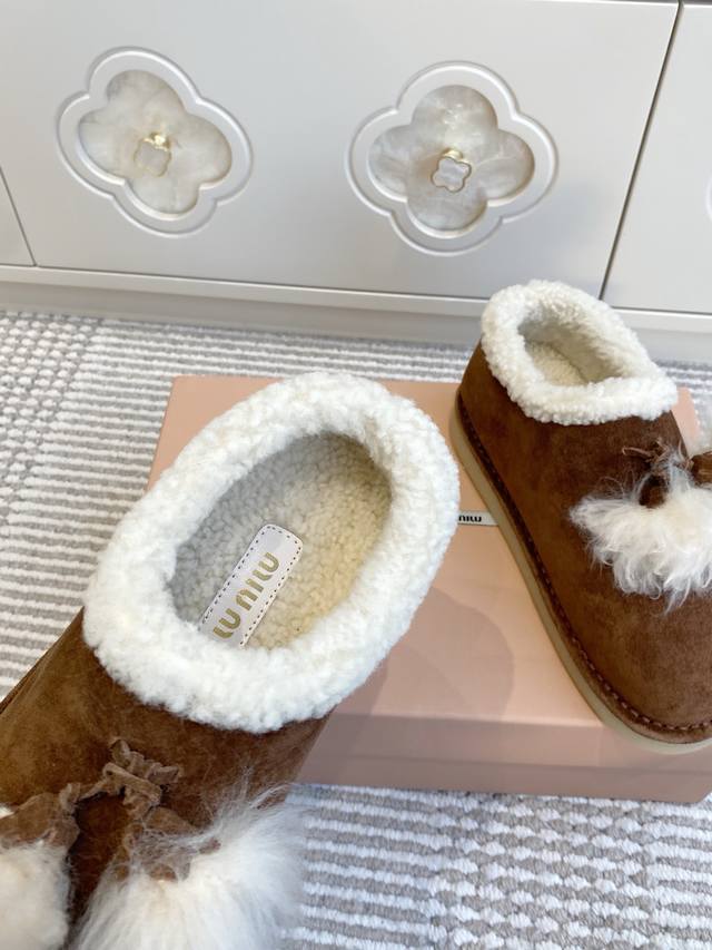 Miumiu 2025Ss Fall/Winter Runway Wool Ankle Boots, Snow Boots, Furry Shoes DDD Frequently featured on the covers of major fashion magazines, loved by celebrities and Xiaohongshu bloggers, these boots are absolutely stunning on foot