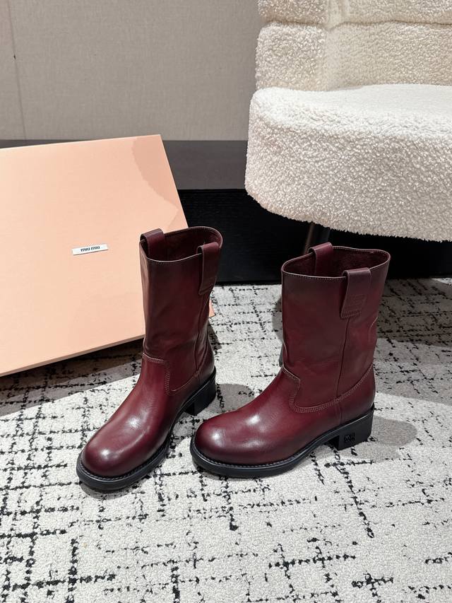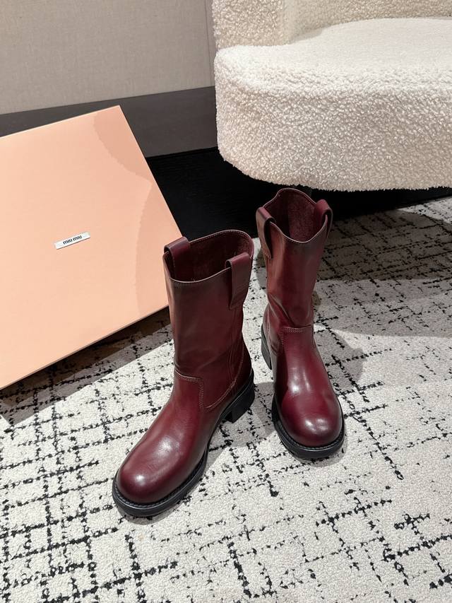 Miumiu 2026 Spring/Summer Runway Style Slouch Boots DDD The boot shaft features natural pleats for a relaxed and casual look. The semi-inner lining design makes them lightweight and not bulky, perfect for autumn and winter outfits. The soft insole ensures comfort even after long wear. Suitable for city walks or everyday outings, these boots blend inspiration with practicality and style, making them one of the season's highlight pieces. DDD Material: Washed cowhide leather DDD Outsole: Rubber sole, non-slip and wear-resistant DDD Size: #35-40 Size 40 is custom-made and non-refundable DDD