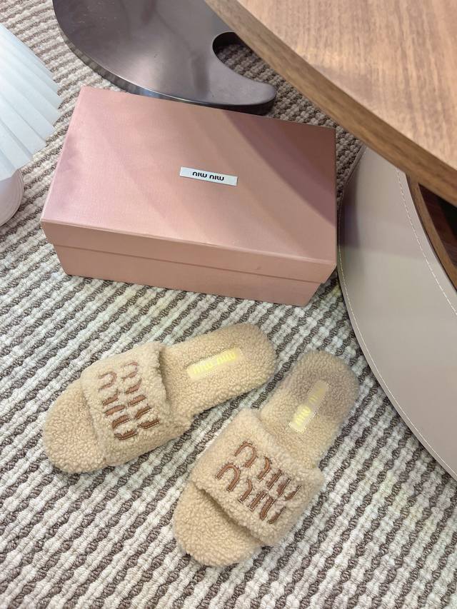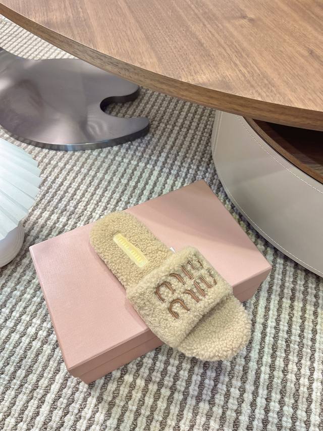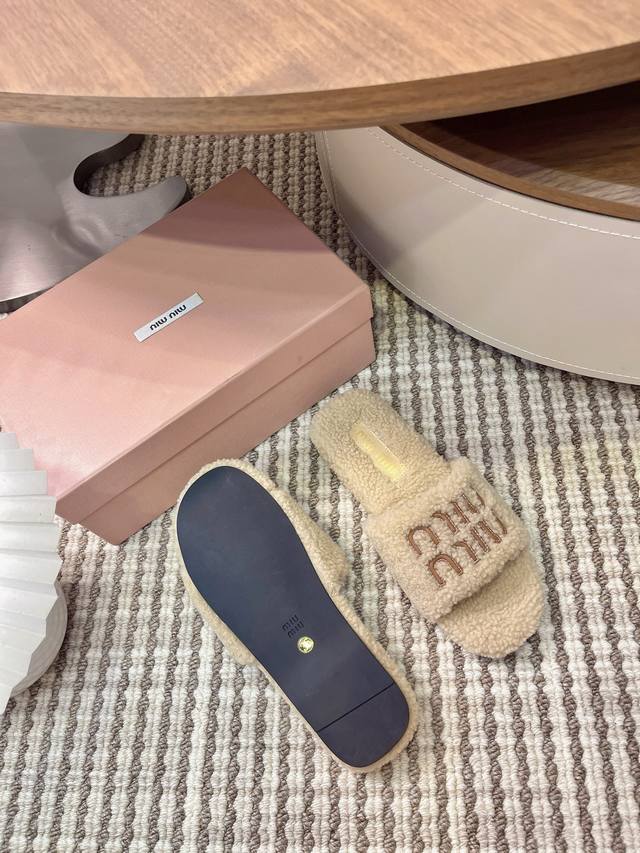 Miumiu 25Ss Autumn/Winter Runway New Style Celebrity-Style Flat Home Furry Slippers