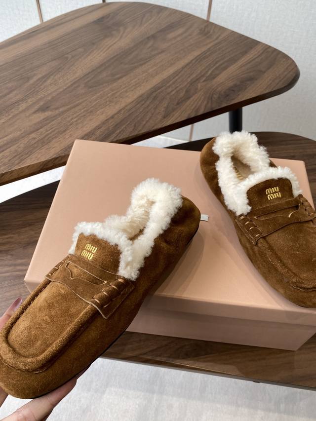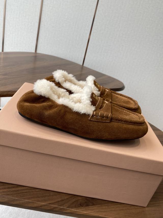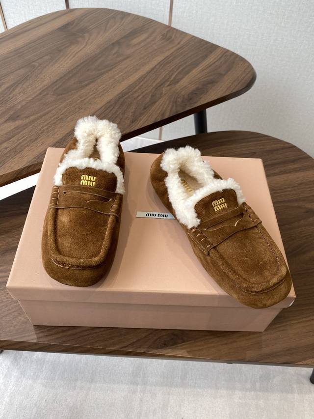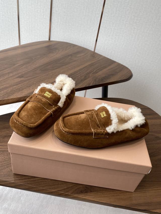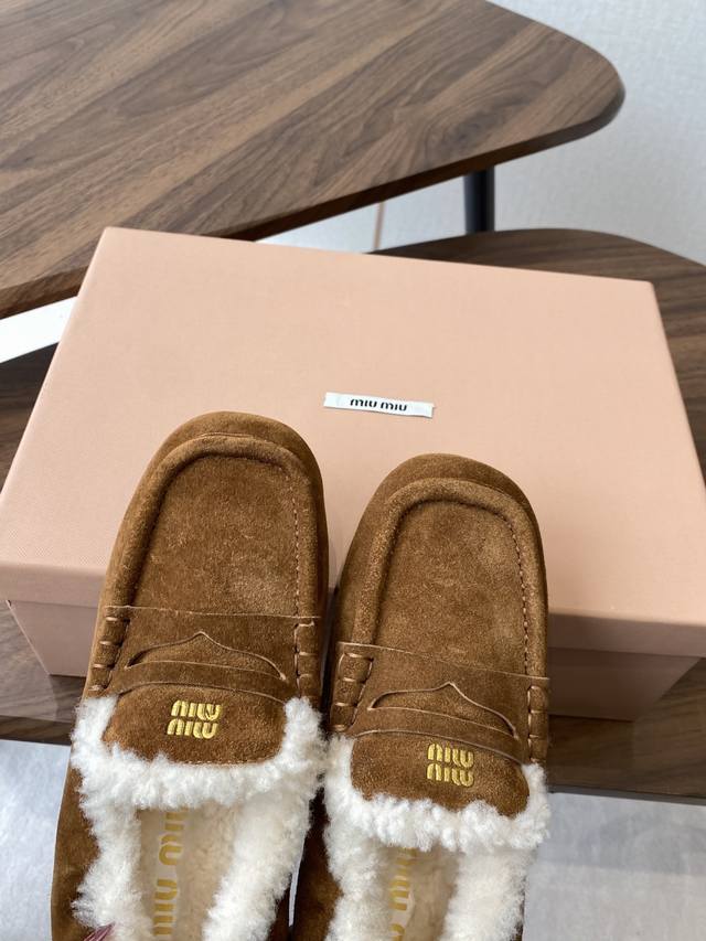 Miumiu 25Ss autumn/winter runway-style wool square-toe loafers (
