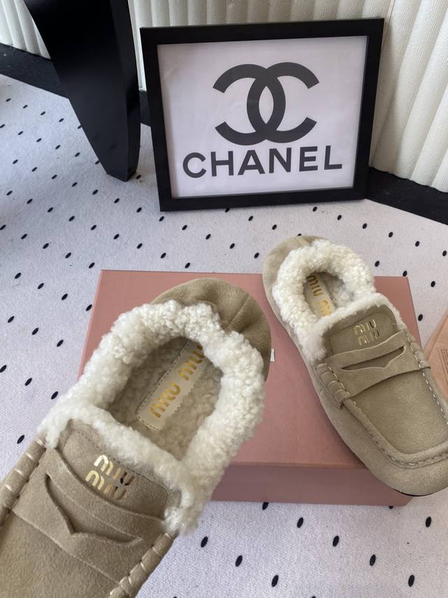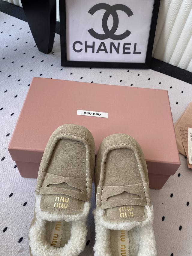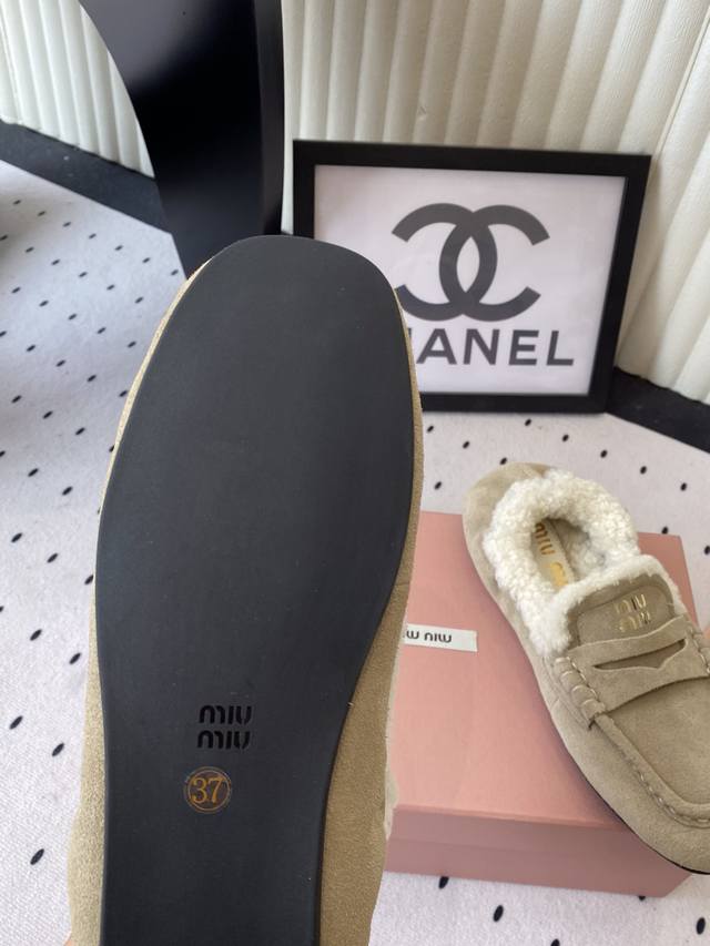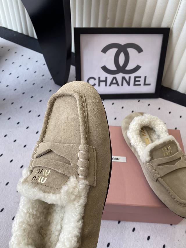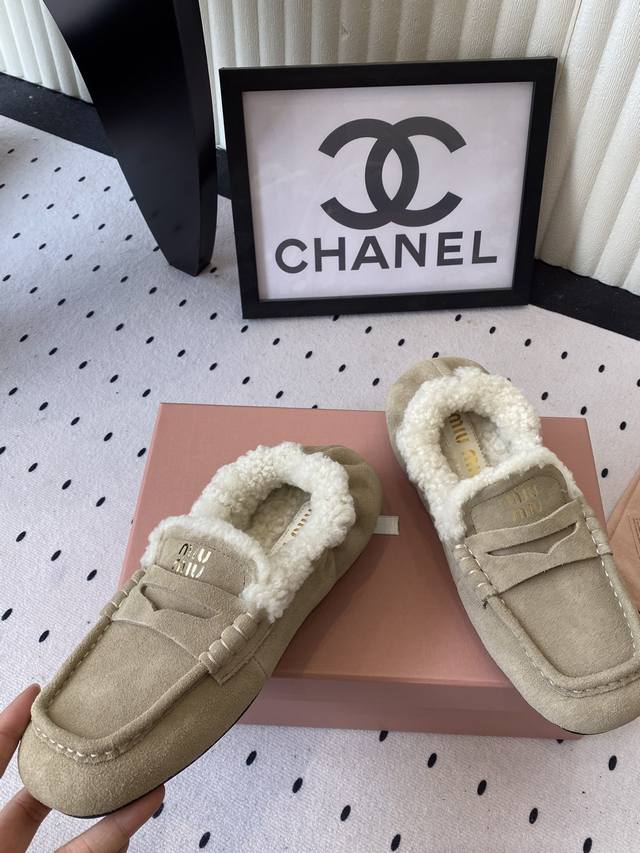 Miumiu Autumn/Winter New Wool Loafers, High-Quality Version, Celebrity and Influencer Favorite, Comfortable, Stylish, Warm, Imported Grade A Wool Upper, Original Anti-Slip and Wear-Resistant Outsole. Size: 35-40