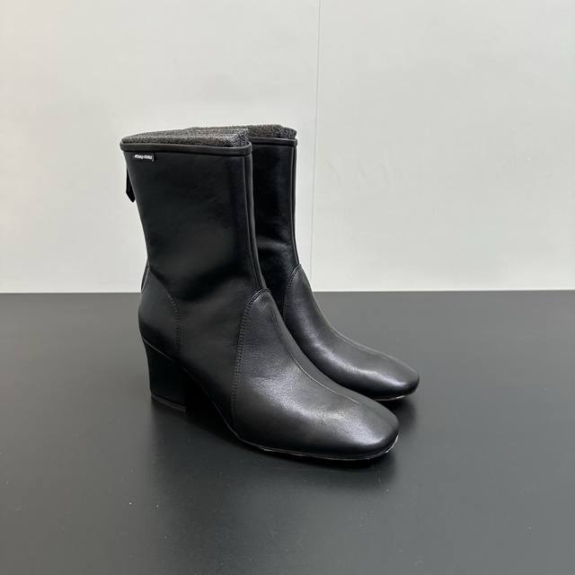 Miumiu F033 25Ss Autumn/Winter Elastic Back Zipper Ankle Boots, the most worthwhile boots to buy this year, bar none! Many internet celebrities and stars have been seen wearing Miumiu's Autumn/Winter limited edition boots, which are very hard to find in stores. They are incredibly soft and comfortable! Super comfortable on the feet! They create a relaxed feel and make your legs look straight. Material: Imported elastic leather; Lining: Lycra fabric; Outsole: Genuine leather; Heel height: 6.5cm; Shaft height: 16.5cm; Shaft opening: 27cm. Size: 35-39; Sizes 40 and 41 are custom-made and non-refundable.