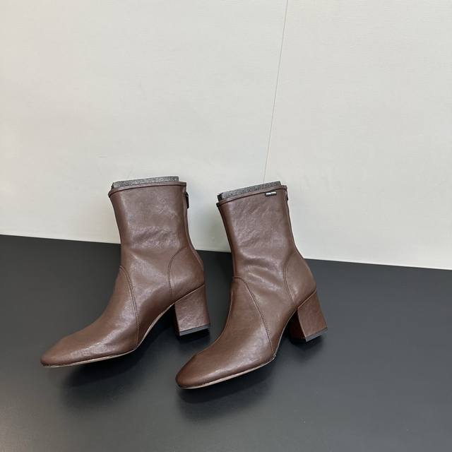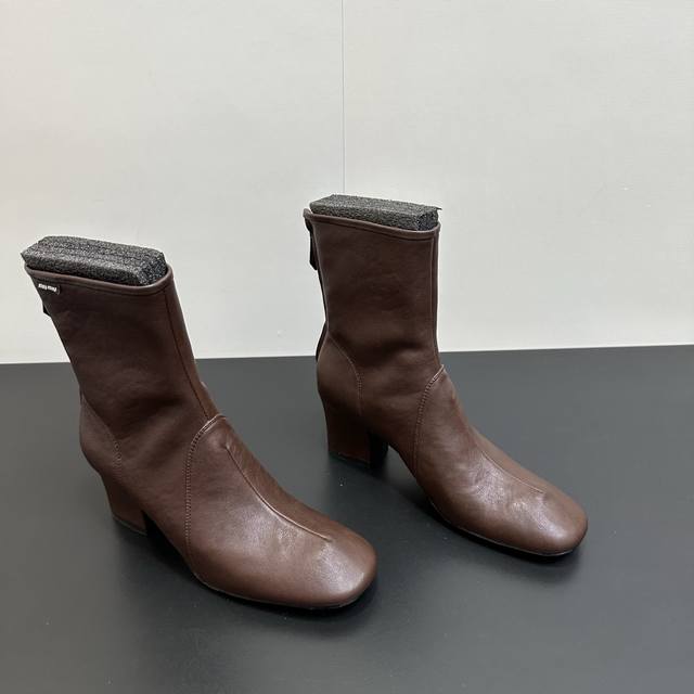 Miumiu F033 25Ss Autumn/Winter Elastic Back Zipper Ankle Boots, the most worthwhile boots to buy this year, bar none! Many internet celebrities and stars have been seen wearing Miumiu's Autumn/Winter limited edition boots, which are very hard to find in stores. They are incredibly soft and comfortable! The feel is amazing! They create a relaxed look and make your legs appear straight. Material: Imported elastic leather; Lining: Lycra fabric; Outsole: Genuine leather; Heel height: 6.5cm; Shaft height: 16.5cm; Shaft opening: 27cm. Size: 35-39; Sizes 40 and 41 are custom-made and non-refundable.