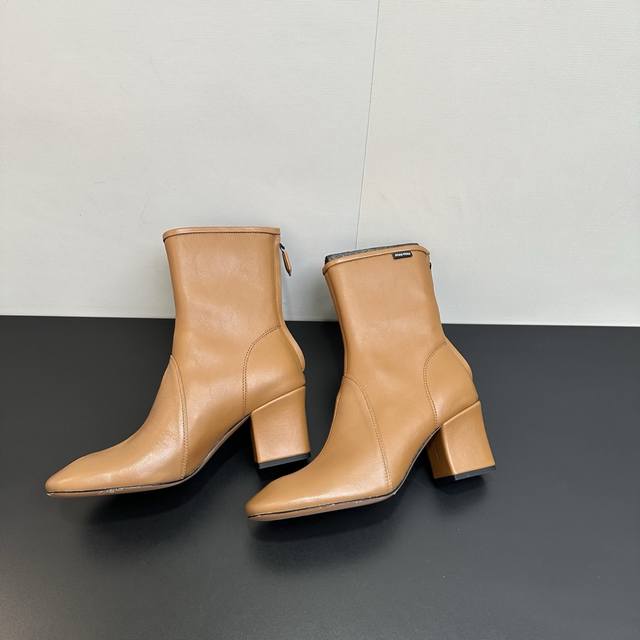 Miumiu F033 25Ss Autumn/Winter Elastic Back Zipper Ankle Boots, the most worthwhile boots to buy this year, bar none! Many internet celebrities and stars have been seen wearing Miumiu's Autumn/Winter limited edition boots, which are very hard to find in stores. They are incredibly soft and comfortable! The feel is amazing! They create a relaxed look and make your legs appear straight. Material: Imported elastic leather; Lining: Lycra fabric; Outsole: Genuine leather; Heel height: 6.5cm; Shaft height: 16.5cm; Shaft opening: 27cm. Size: 35-39; Sizes 40 and 41 are custom-made and non-refundable.