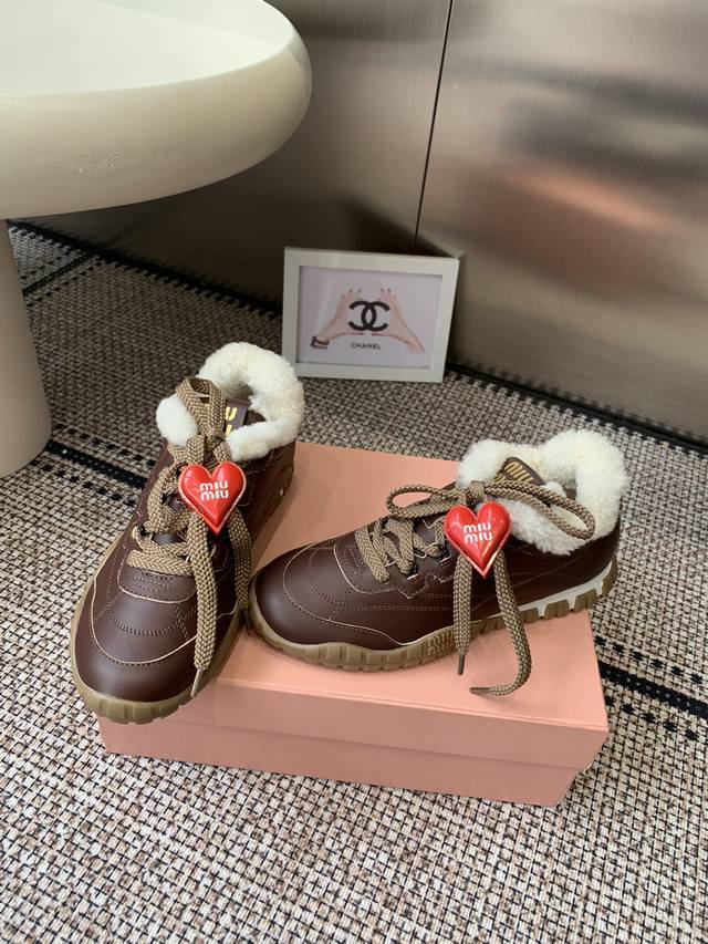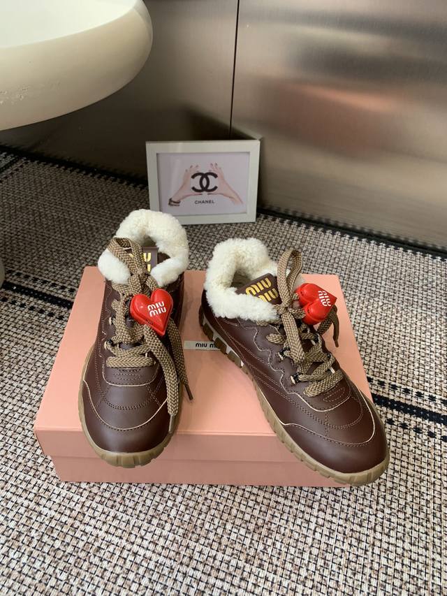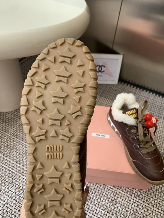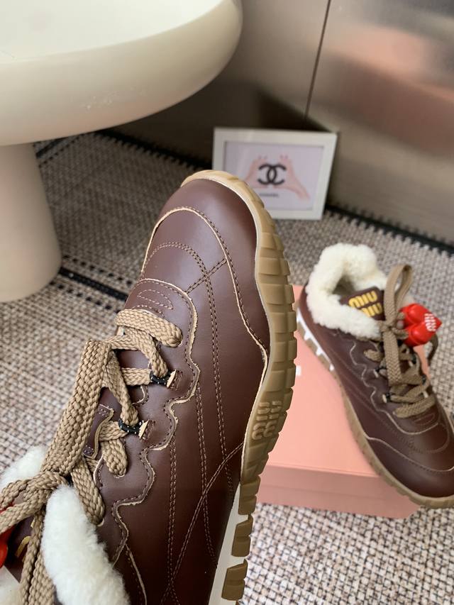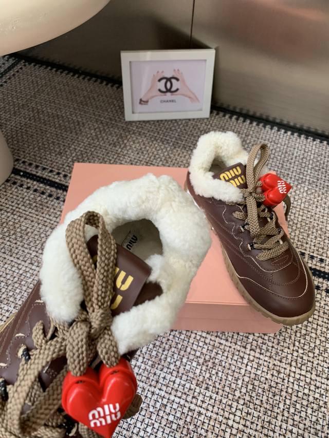 Miumiu Fall/Winter Newest Furry Shoes, Biscuit Shoes, Casual Shoes, Accessories 60 DDD Many celebrities and influencers are recommending this latest hot-selling Miu style. The avant-garde and bold design incorporates the Miu Miu style into this platform canvas sneaker. The simple lines and unique logo adorning the tongue and back add a retro touch and signature element. The platform design defines a modern and avant-garde style. Outer material: cowhide leather; inner lining: genuine wool, super warm DDD Original molded non-slip rubber outsole. Sizes: 35-40. Size 40 is custom-made and non-refundable DDD