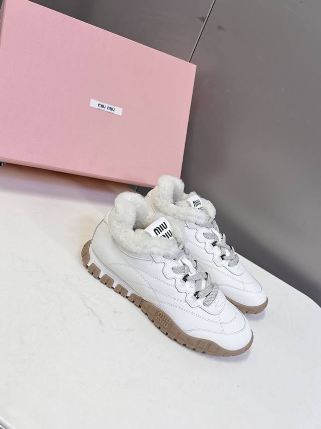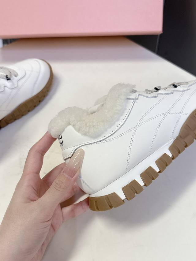 Miumiu Fall/Winter Newest Furry Shoes, Biscuit Shoes, Casual Shoes DDD Many celebrities and influencers are raving about Miu's latest hot-selling style. The avant-garde and bold design, Miu Miu style is integrated into the simple lines of this platform canvas sneaker. Unique logos adorn the tongue and back, embellishing the retro design and adding iconic elements! Platform design defines an avant-garde modern style. Material: Original custom fabric, cow suede. Lining: Real wool, super warm. Outsole: Original molded anti-slip rubber outsole. Size: 35-40. Size 40 is custom-made and non-refundable DDD