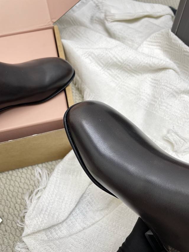 Miumiu limited edition runway style retro riding boots, Chelsea short boots. They look great no matter how you wear them, a must-have for fashionistas this summer. They don't look very comfortable, but they're incredibly comfortable on your feet. Upper: Imported cowhide. Lining: Imported cowhide lining. Sizes: 35-40. Size 40 is custom-made, no returns or exchanges.