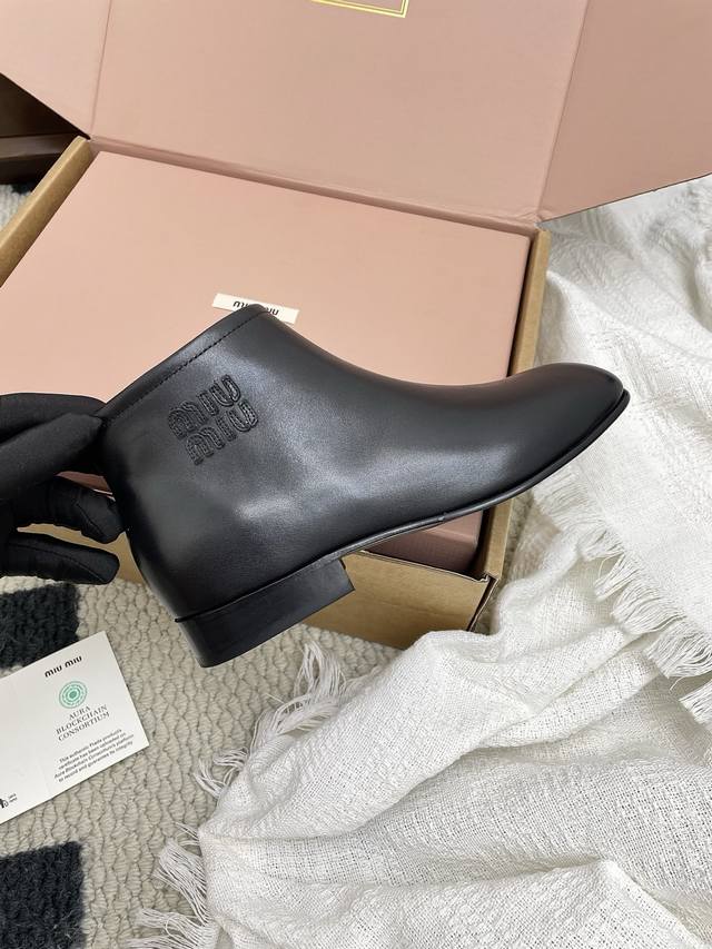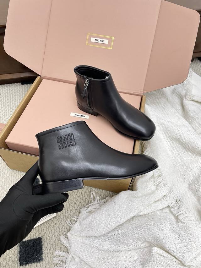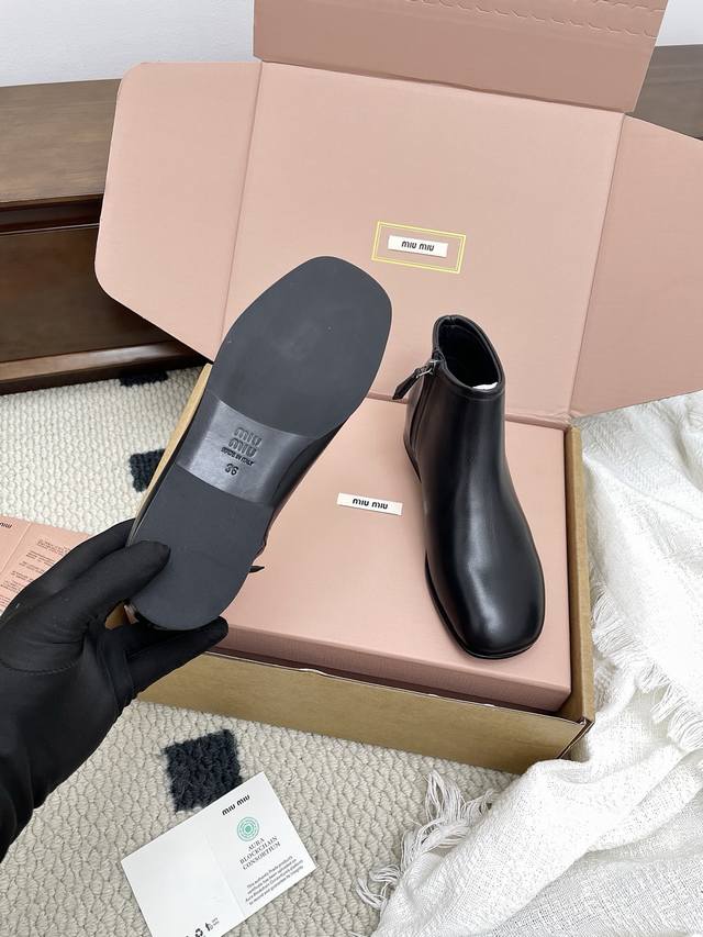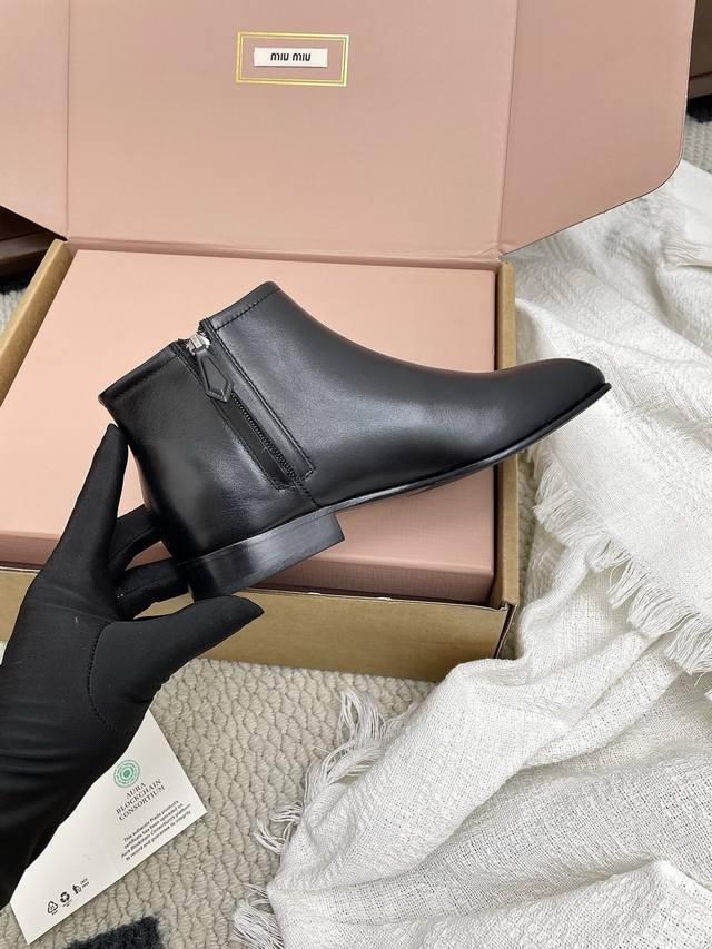 Miumiu limited edition runway style retro riding boots, Chelsea short boots. They look great no matter how you wear them, a must-have for fashionistas this summer. They don't look very comfortable, but they're incredibly comfortable on your feet. Upper: Imported cowhide. Lining: Imported cowhide lining. Sizes: 35-40. Size 40 is custom-made, no returns or exchanges.