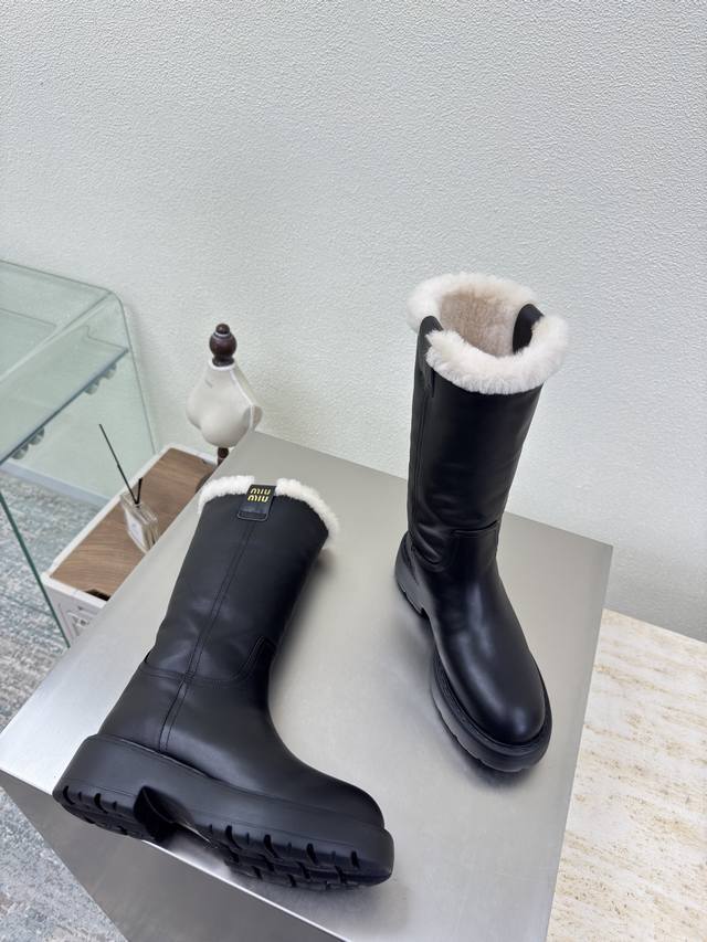 Miu'miu Loafers with Wool Lining and Thick Sole DDD Black Calfskin with 3D Metal Logo DDD Thick Sole Design DDD Miu'miu Classic Comfort Production DDD Original and Consistent Molding Outsole High Version DDD Top Layer Cowhide Outer Material DDD Lambskin Lining DDD 3D Stitching Craftsmanship DDD Original and Consistent Design DDD Girlish Comfort DDD Perfect Match DDD Sizes 35 36 37 38 39 40 41 40 41 Custom Sizes DDD Original Packaging DDD