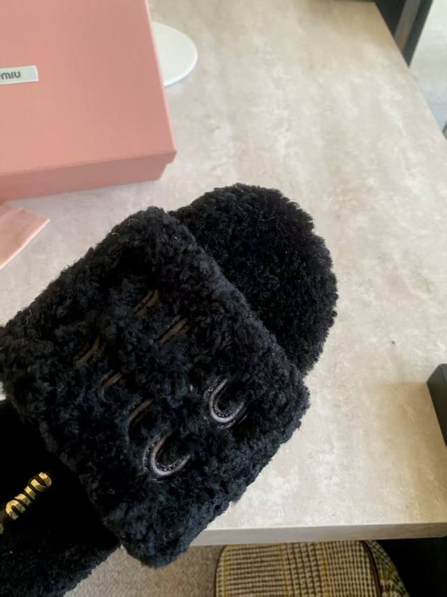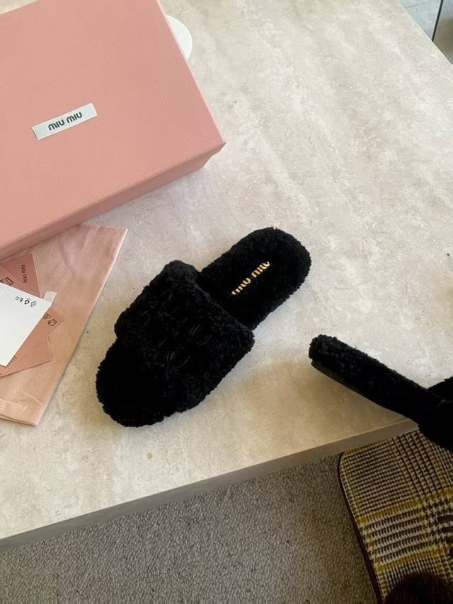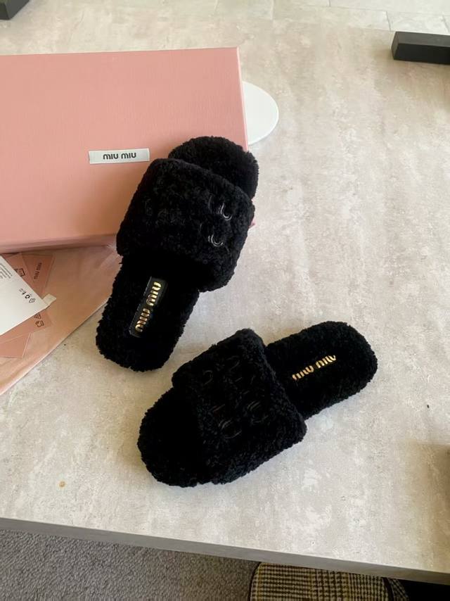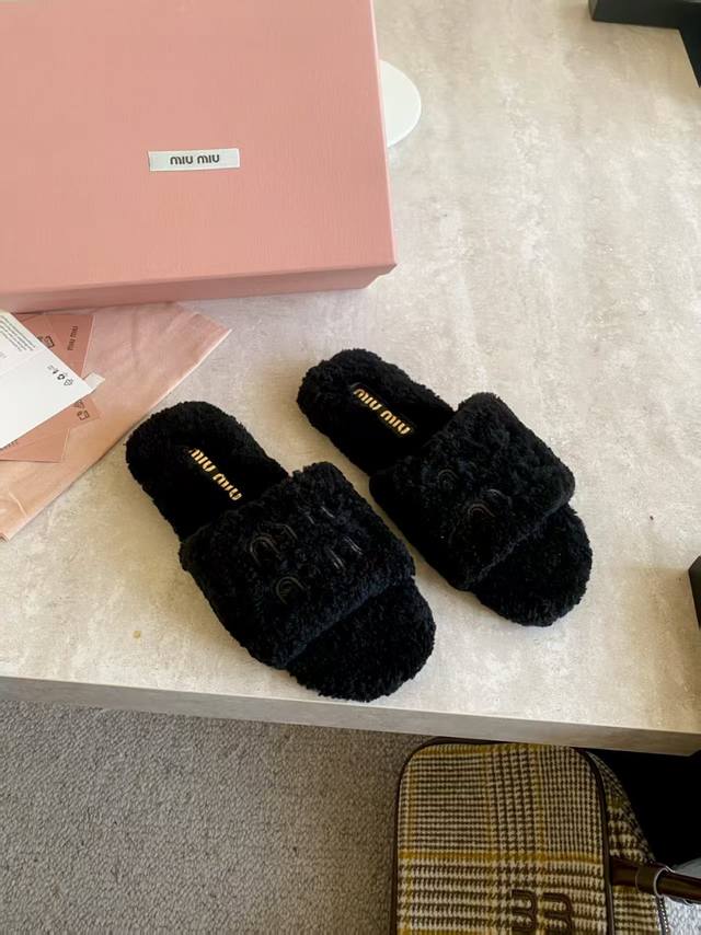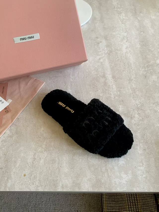 Miumiu Miu Miu 2025 Autumn and Winter Furry Slippers