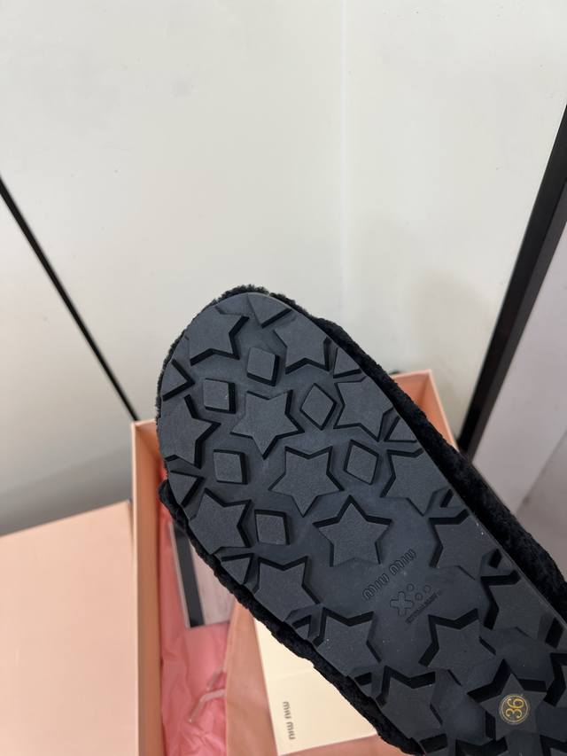 Miu Miu has made me fall in love with them all over again! There are so many beautiful shoes this season, and these furry slippers are really irresistible to me. They are so cool and versatile~ They are super beautiful and comfortable to wear. Fabric: imported sheep curly wool, soft and comfortable