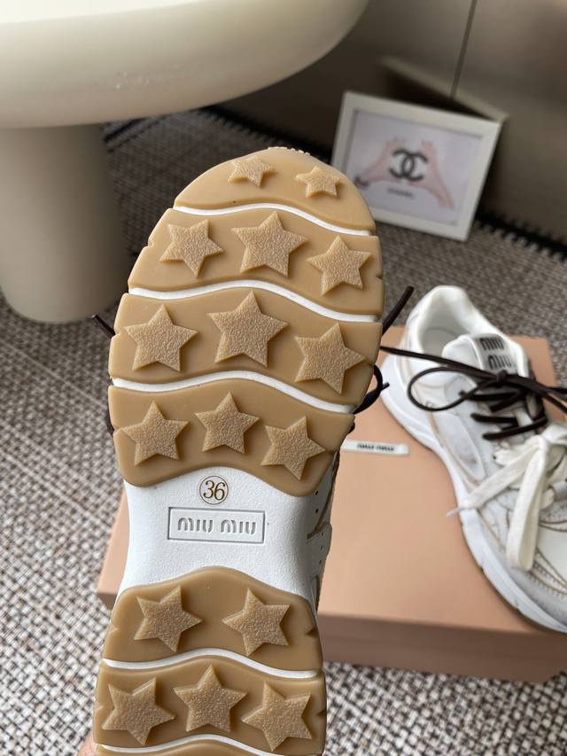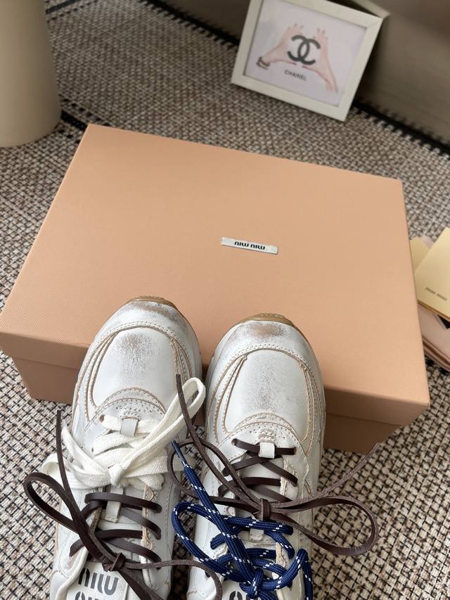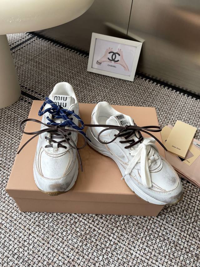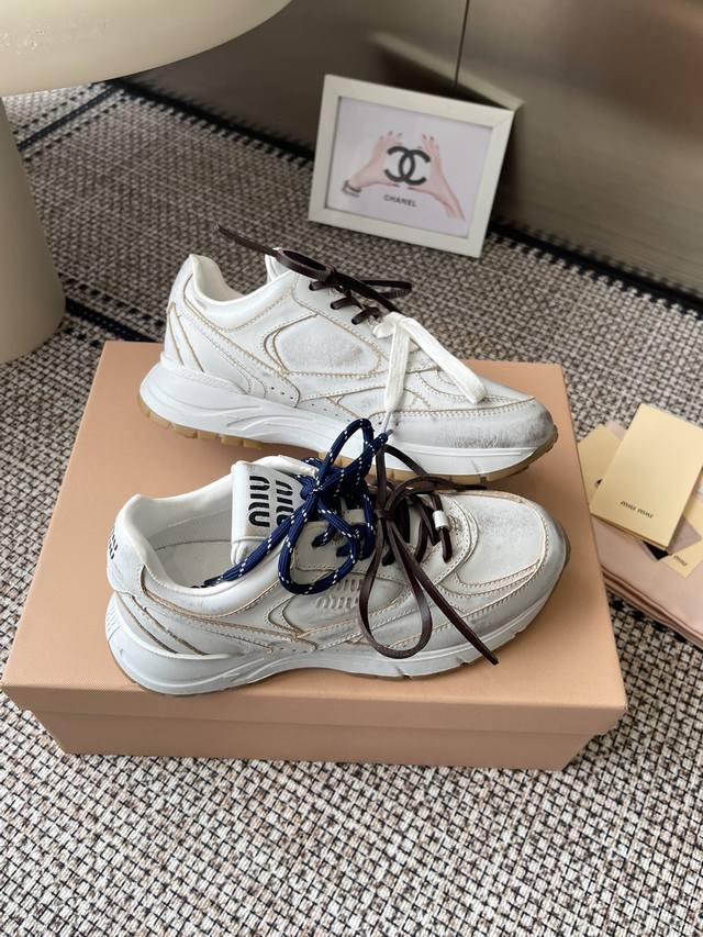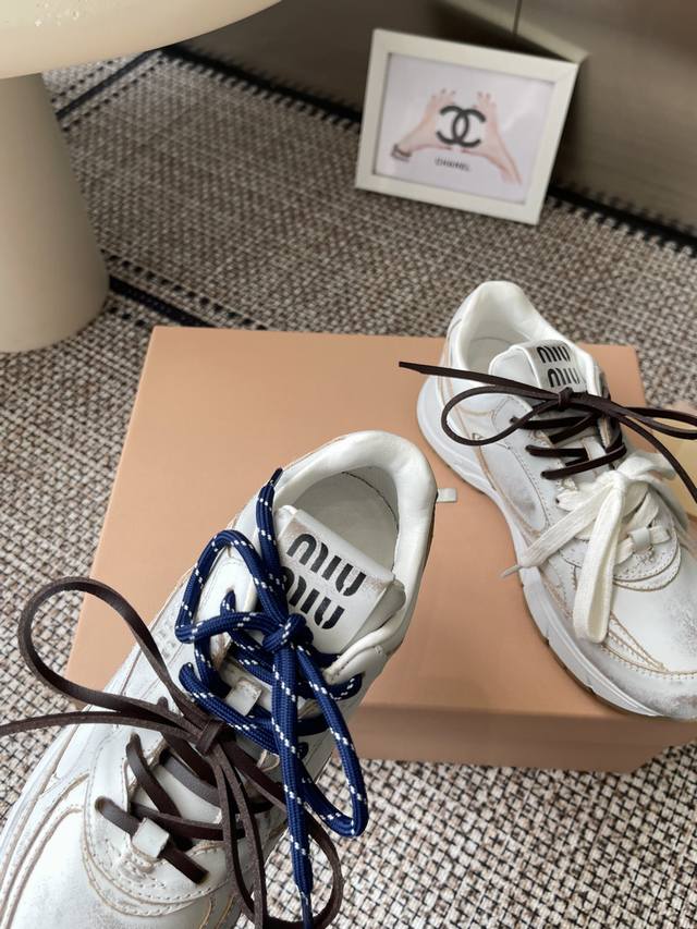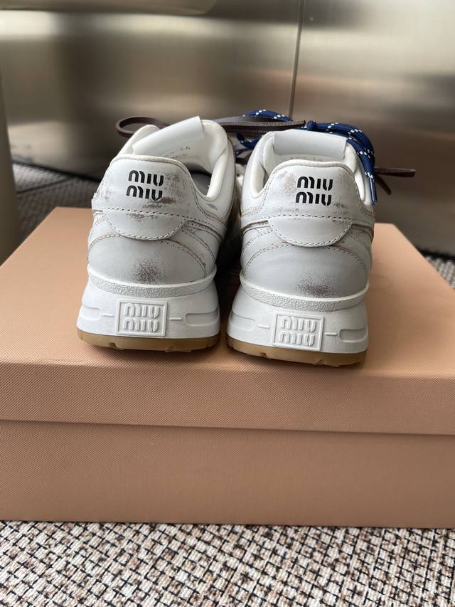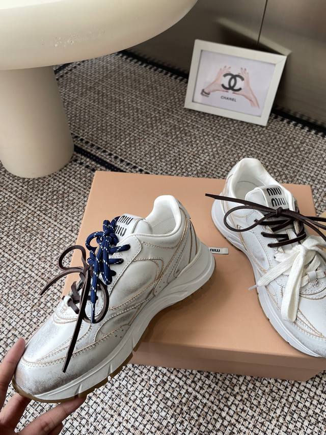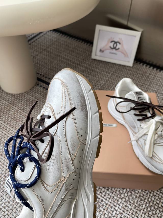 Miumiu Miu Miu 25Ss New Arrival~2025 catwalk new retro distressed Forrest Gaunt training shoes thick-soled casual sneakers