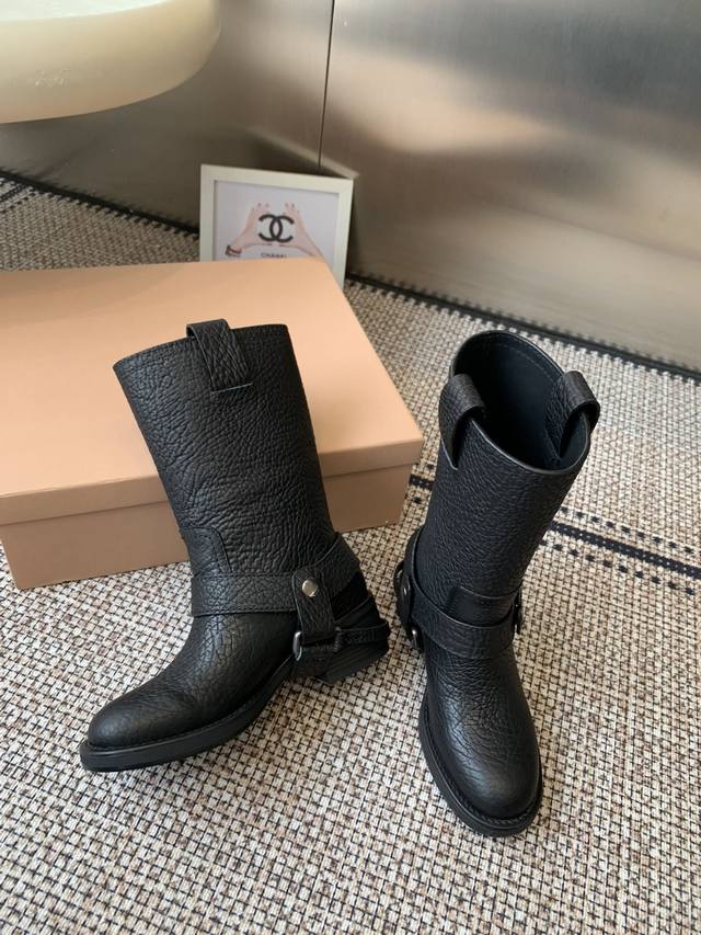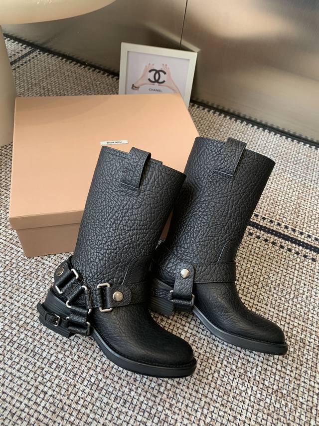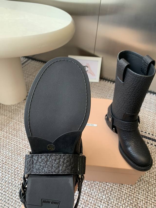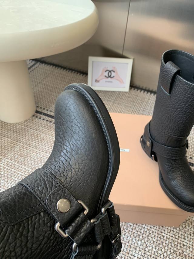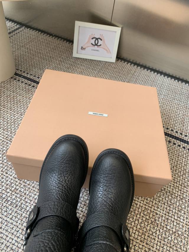 Miumiu Miu Miu 25Ss new autumn/winter heavy-duty motorcycle boots, short boots.