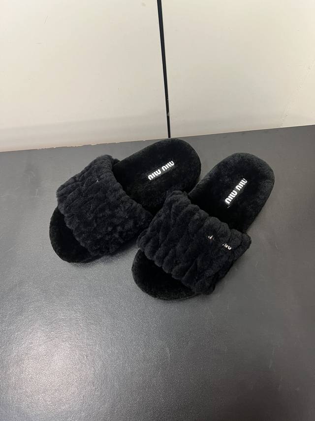 Miumiu Miu Miu furry slippers, new autumn and winter styles. Miu Miu's autumn and winter new season trend elements, combined with the concept of current love, collide in a variety of ways to convey a modern style~