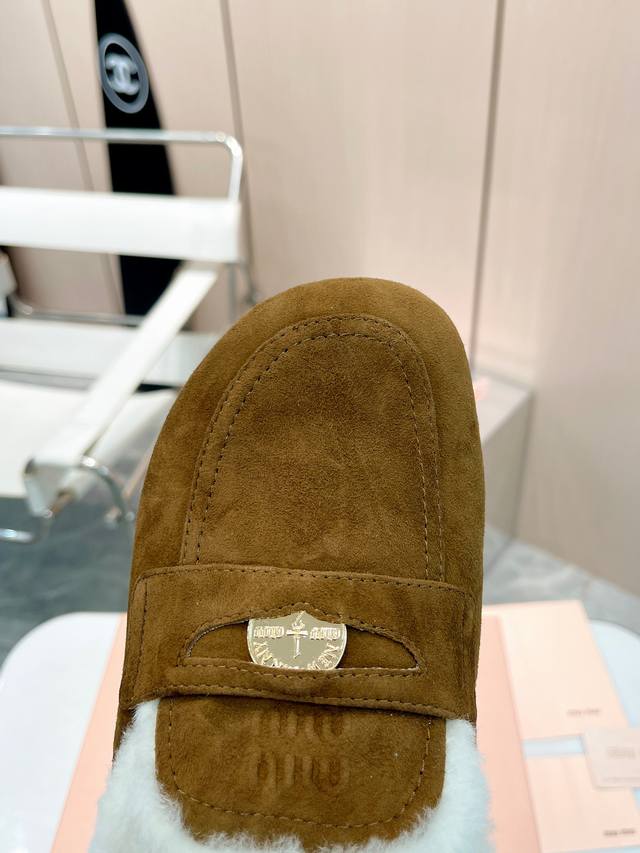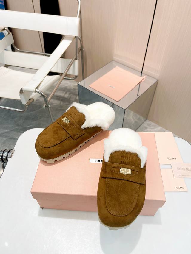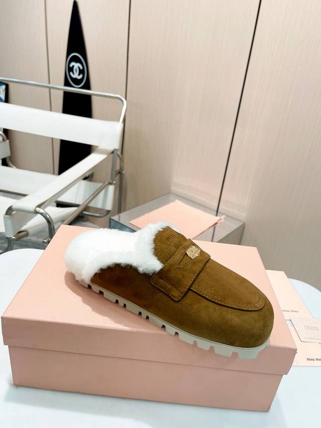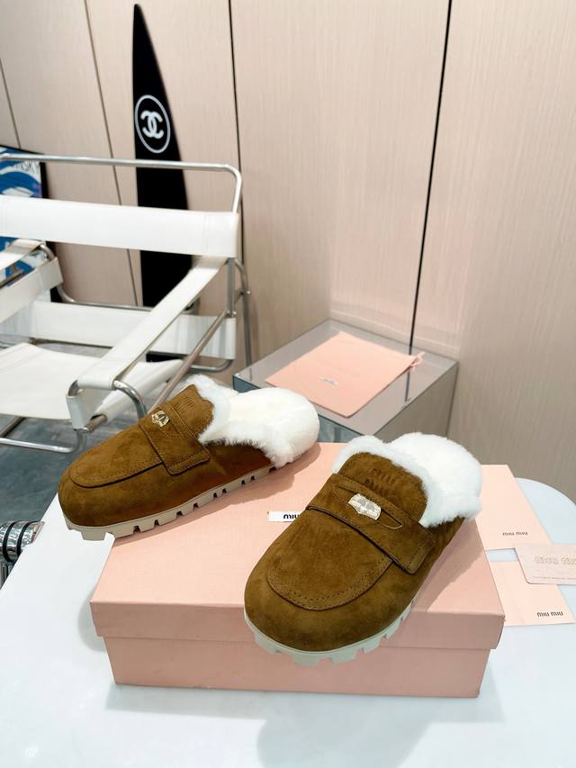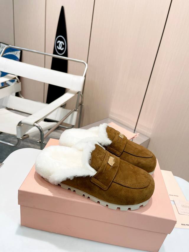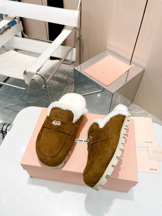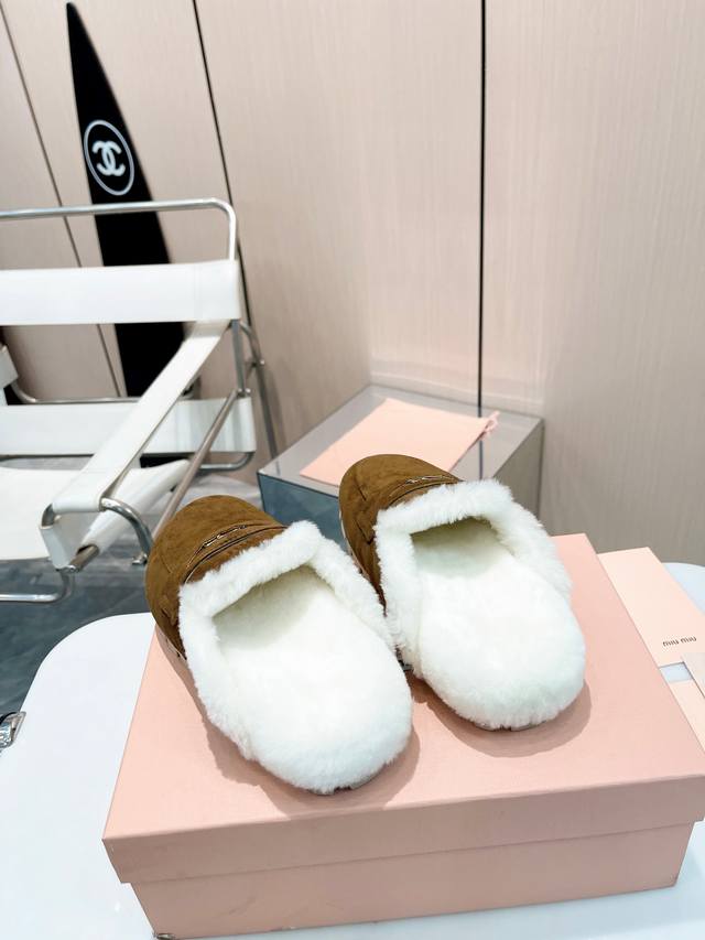 Miumiu ~Miumiu's Latest Fall/Winter Furry Slippers~ DDD Miumiu has released quite a few this year! These furry slippers are so pretty! The leather is so high-end!! They're perfect with fall/winter denim shorts! Wearing them instantly gives you the ideal height! DDD A must-have style, with fashionable elements, the upper has a luxurious feel. Wearing them always showcases a woman's fashionable charm