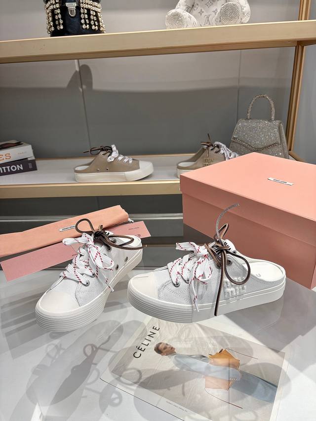 Miumiu spring and summer catwalk style biscuit shoes, closed-toe sneakers,