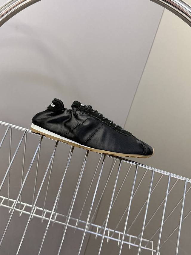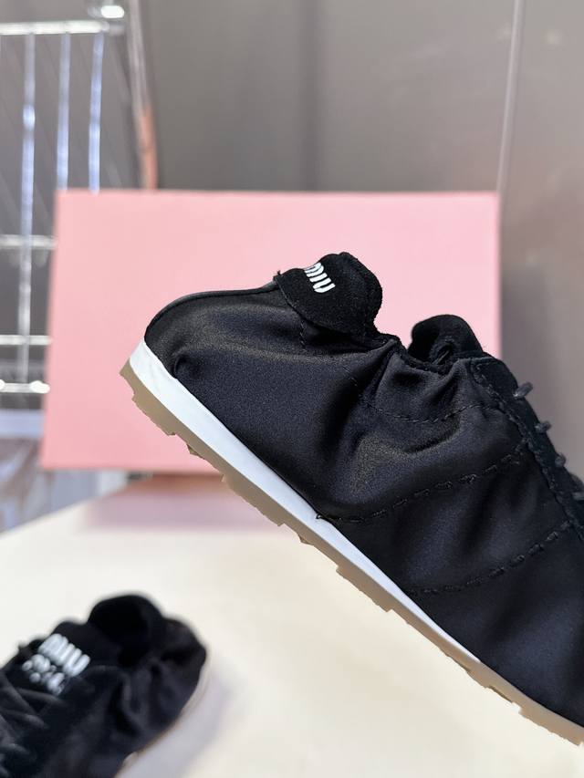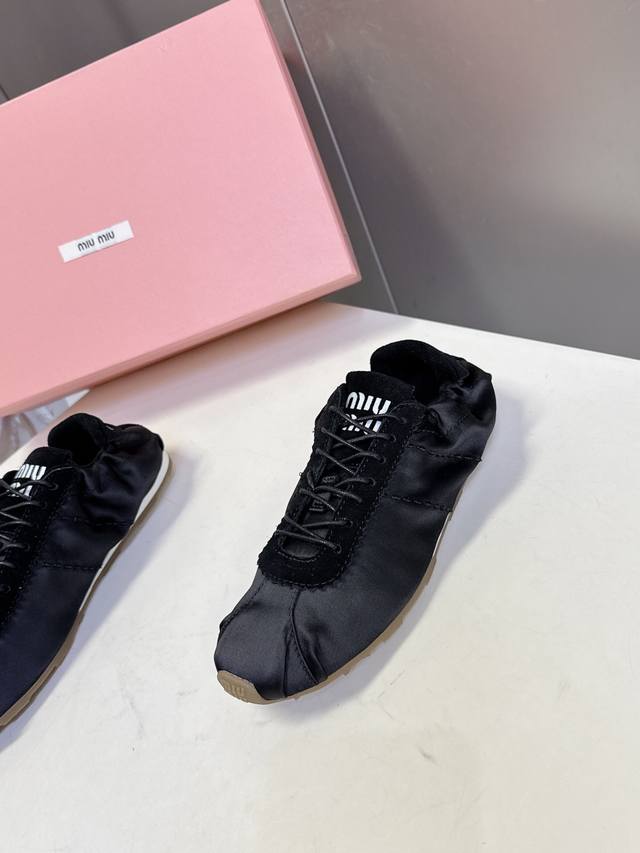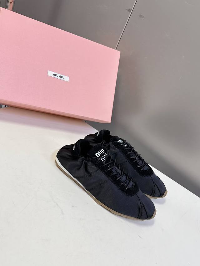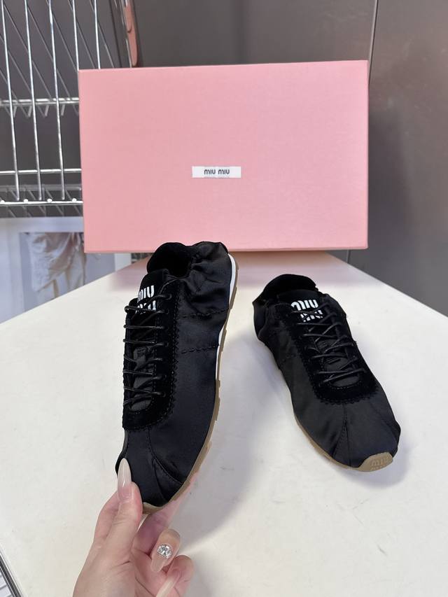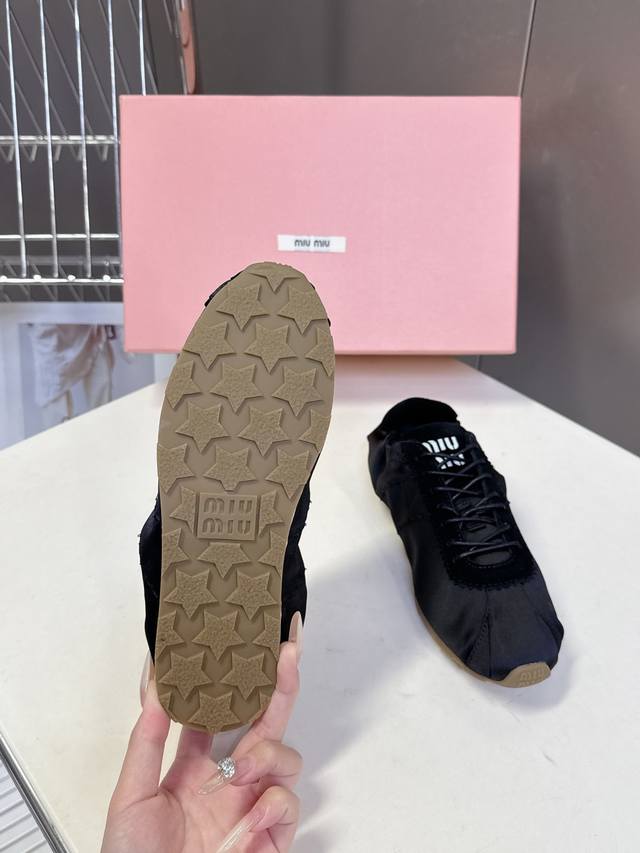 Miumiu Spring/Summer Latest Runway Style Thin-Soled Casual Shoes This is a super popular choice among celebrities, influencers, and bloggers worldwide, especially on Xiaohongshu (Little Red Book). Retro yet stylish, these shoes look amazing on! The simple athletic design and distinctive tongue create a relaxed and sweet look. They exude confidence and are easy to match with any outfit