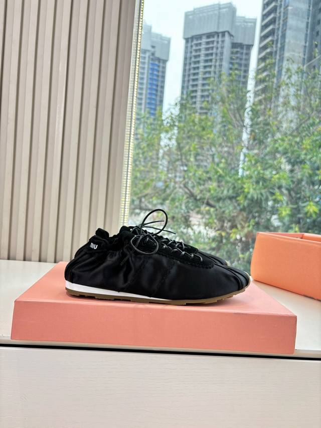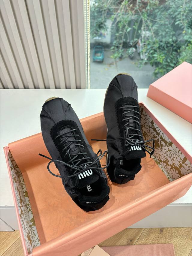 Miumiu Spring/Summer Latest Runway Style Thin-Soled Casual Shoes This is a super popular choice among celebrities, influencers, and bloggers worldwide, especially on Xiaohongshu (Little Red Book). Retro yet stylish, these shoes look amazing on! The simple athletic design and distinctive tongue create a relaxed and sweet casual style. They exude confidence and are easy to match with any outfit